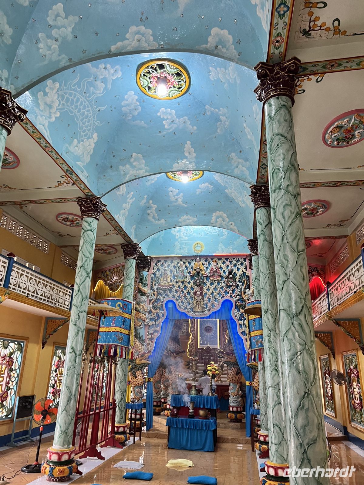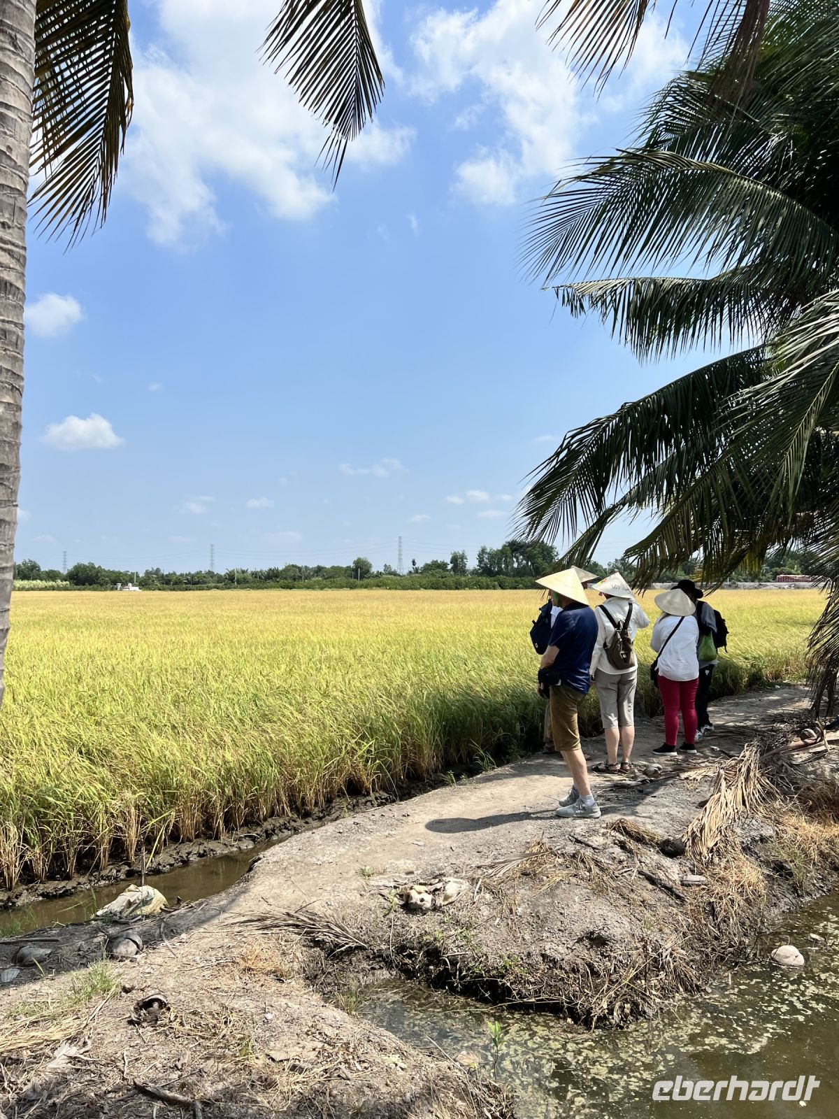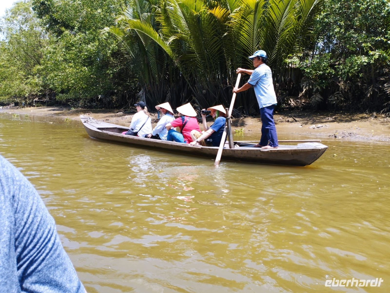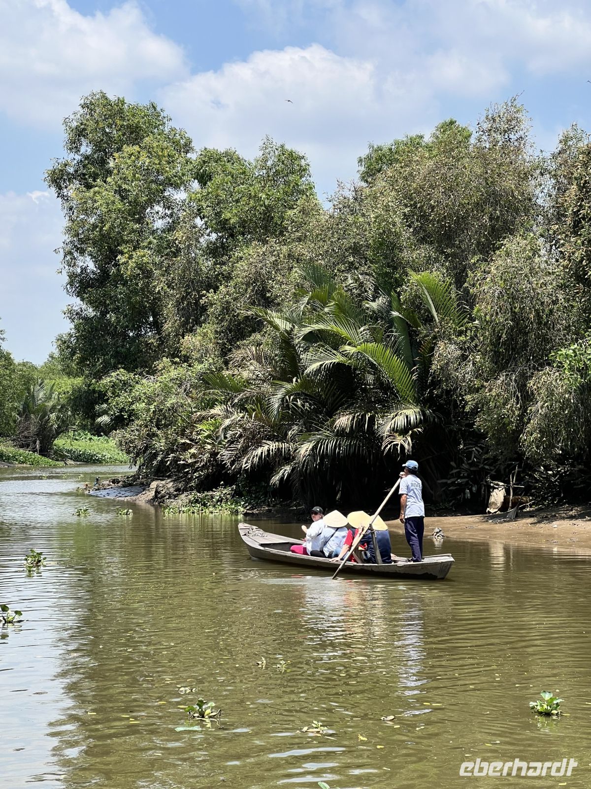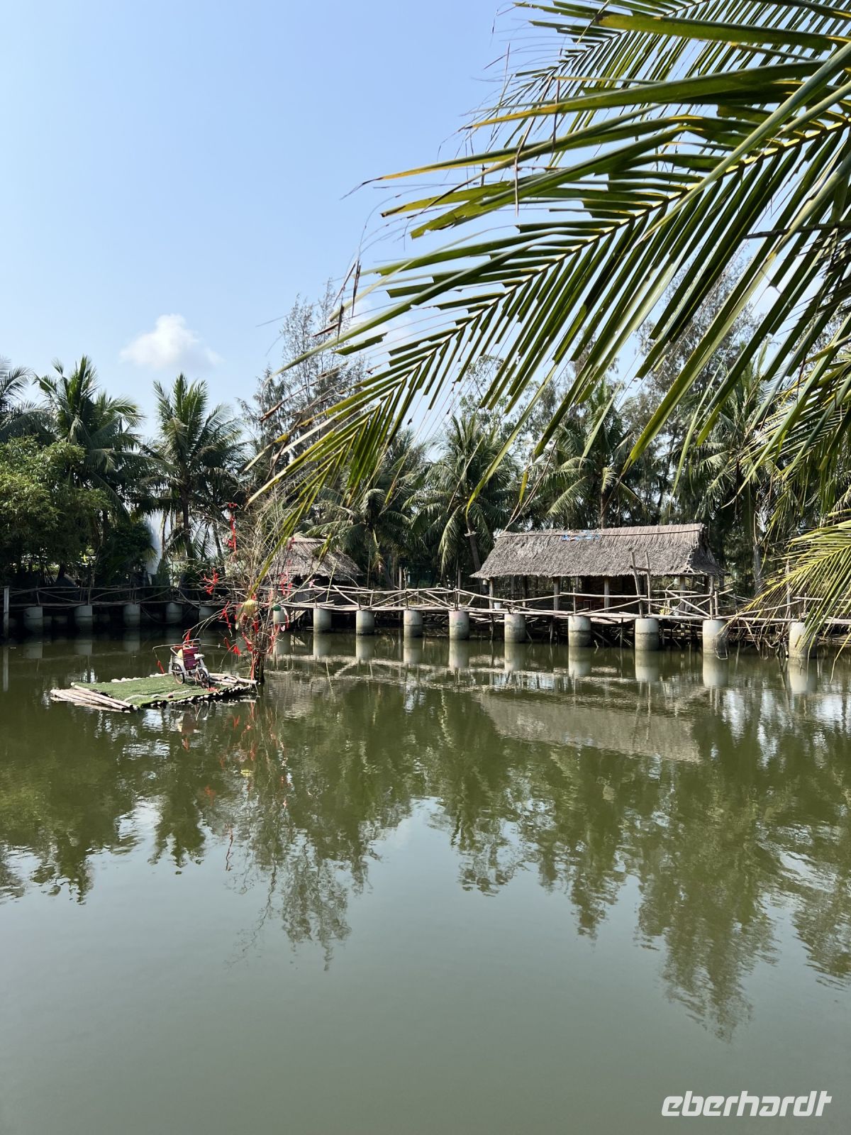 Heute Morgen fuhren wir nach dem Frühstück zur Anlegestelle des Speedbootes für unseren Tagestrip ins Mekong Delta. Ca. 1 1/2 Stunden entdeckten wir mit dem Speedboot die Umgebung zwischen Stelzenhäuser und saftigem Mekong! Wir erreichten unser erstes Ziel gegen 10:00 Uhr. Es ging zu einer einheimische Familie und wir lernten dort, dass Leben und die Ahnenverehrung näher kennen. Nach dem wir die Familie besucht haben, ging es wieder auf das Boot ein Stück weiter...wir besichtigten einen lokalen Markt und entdeckten frisches Obst, frischen Fisch und Bekleidung. Während unseres Rundganges stoßten wir in der Nähe des Marktes auf einen Multireligionstempel. Der verbunde Glauben Caodaismus wurde offiziell 1926 in Vietnam gegründet und hat zwischen 3-6 Millionen Anhänger. Wir stiegen zwischendurch auf ein Sampan und spazierten durch die wunderschöne Mekong-Gegend zwischen Reisfeldern und Bananenbäumen. Wir genossen ein Mekong-Essen mit Elefantenohrfisch und weiteren schmackhaften Gerichten, bevor es wieder auf das Speedboot in Richtung Saigon wieder ging. Am Nachmittag erreichten wir wieder die südvietnamesiche Hauptstadt und es bestand die Möglichkeit in der 18. Etage des Hotels in den Pool zu gehen oder die Stadt eigenkundig weiter zu Entdecken. Somit endete der Tag 11 unsere Vietnamreise.