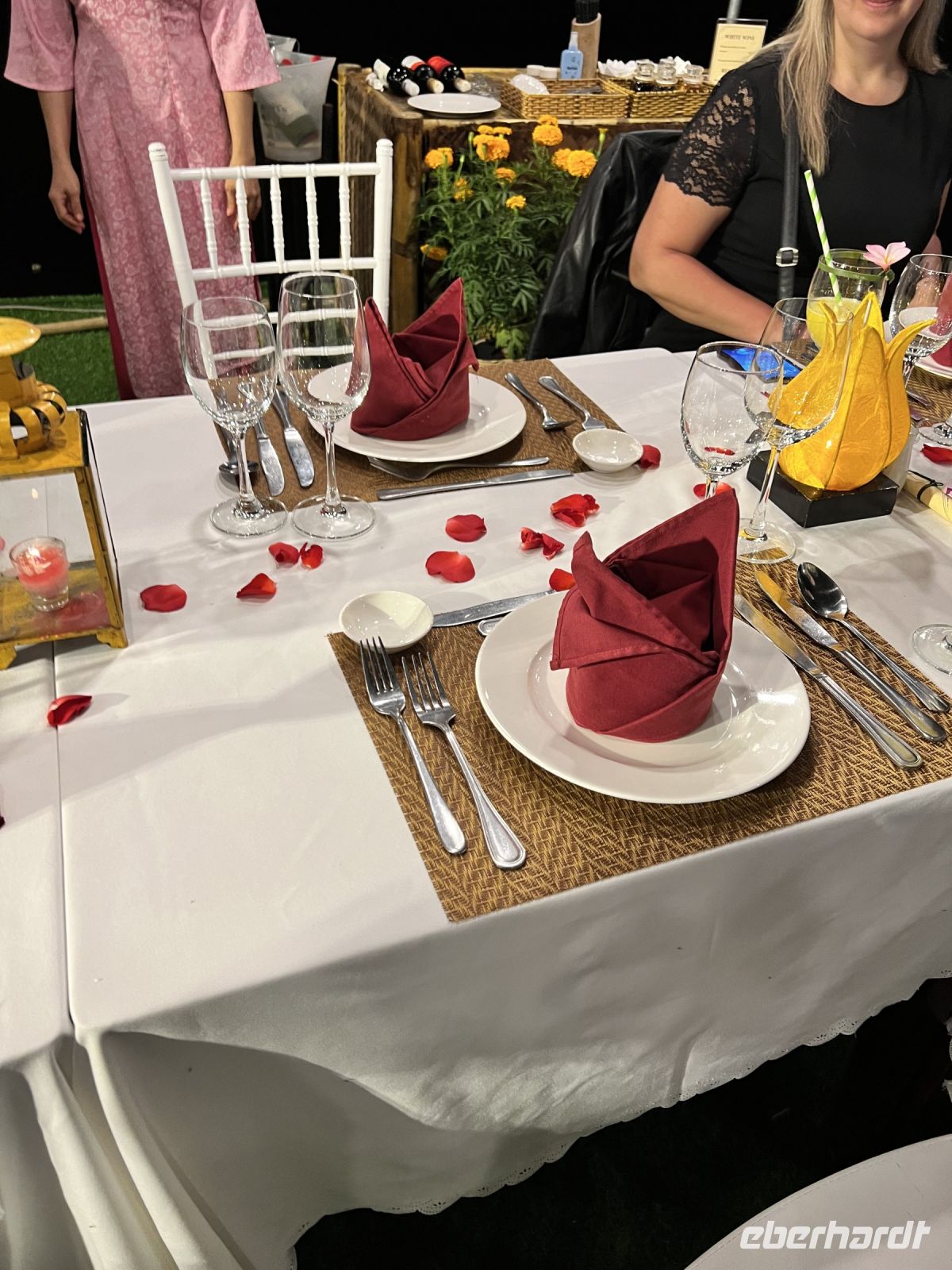 Am Abend wurden wir zu einem besonderen Dinner eingeladen - wir aßen ein Mehrgänge-Menü auf einen Floß mit entspannter Musik und toller Atmosphäre.