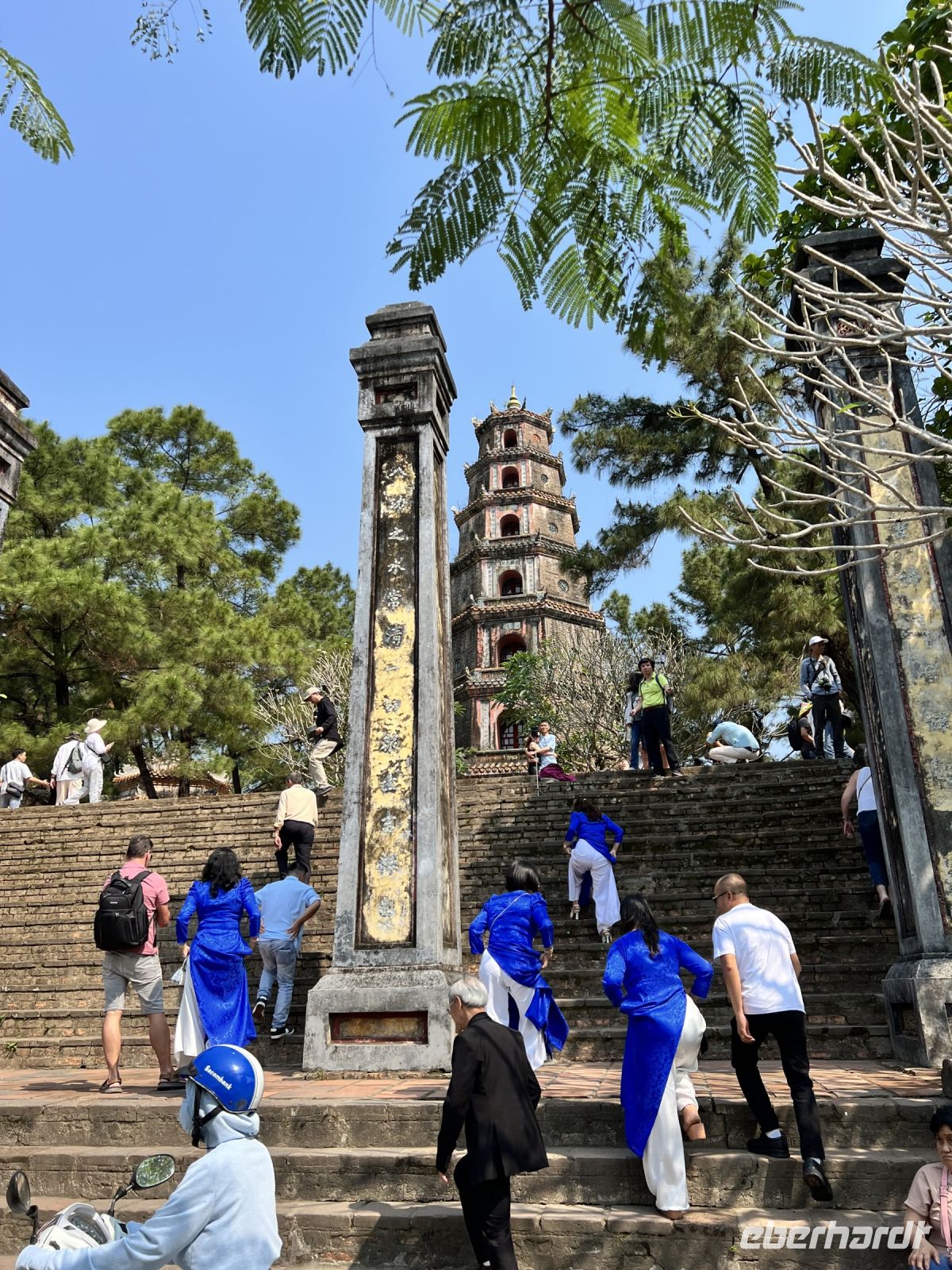 Am Anfang fuhren wir mit unserem Bus nach dem Frühstück, zur größten Pagode Vietnams: der Thien Mu Pagode. Sie ist ein buddhistisches Kloster und wird bis heute noch von vielen Mönchen bewohnt. Mit dem siebenstöckigen „Phuoc Duyen - Turm“ zeigt es ein unfassbaren Wert des Buddhismus.