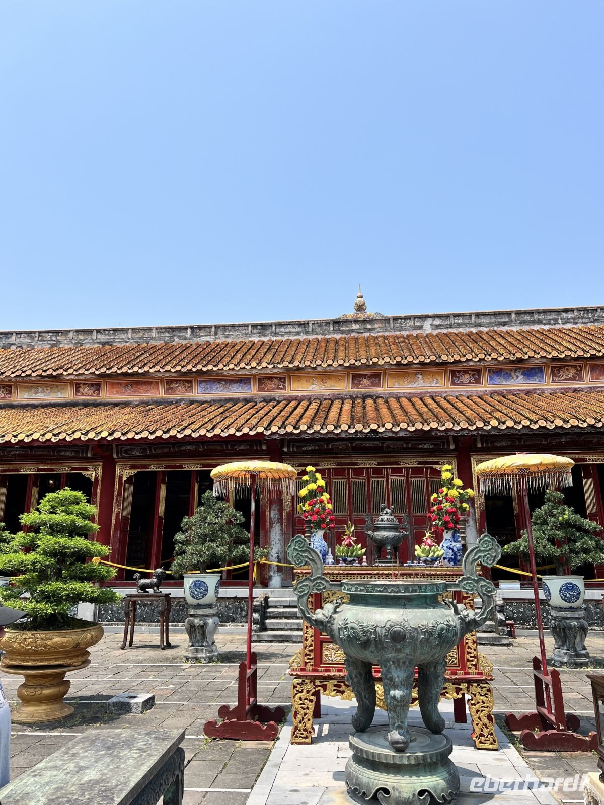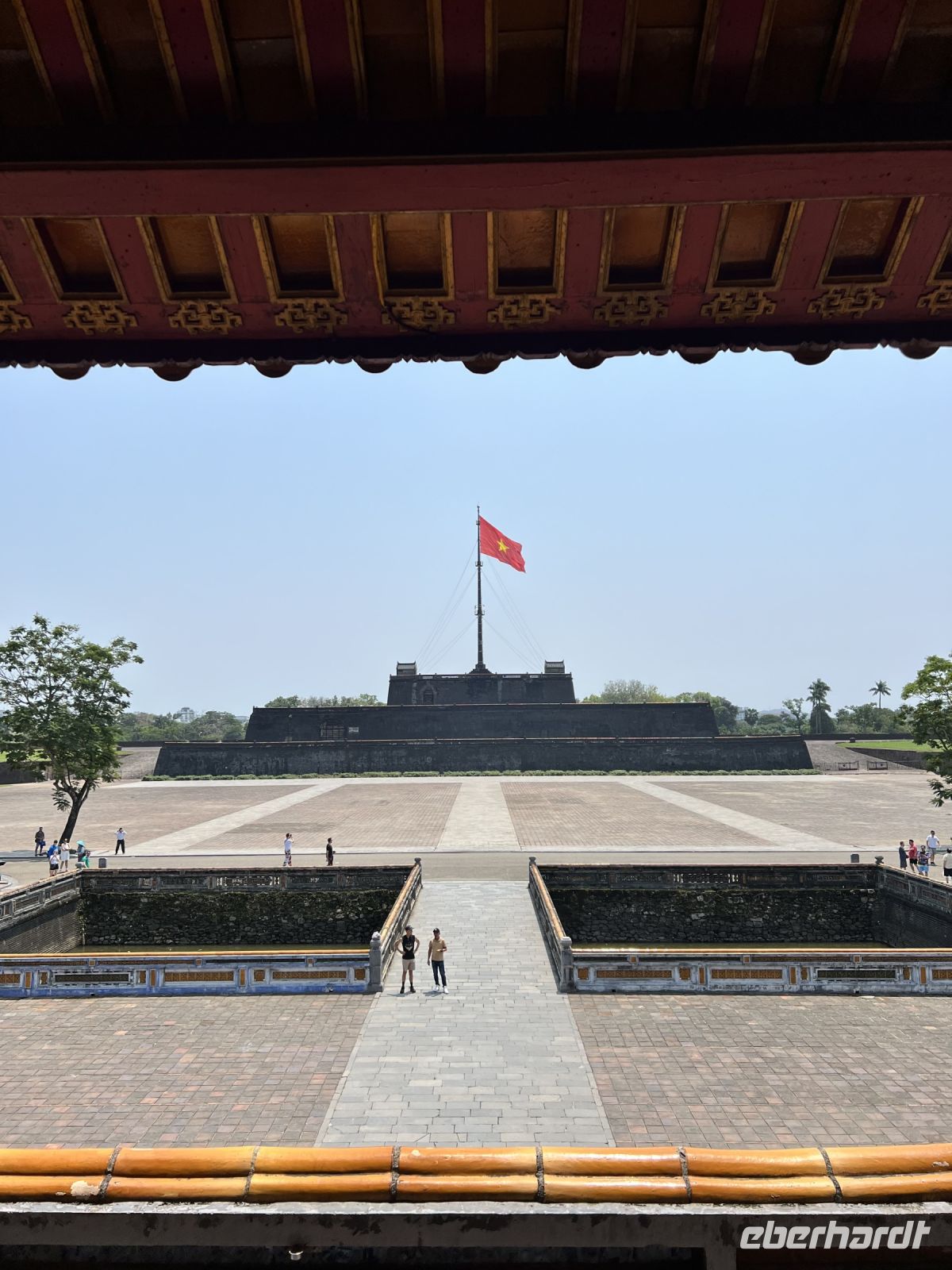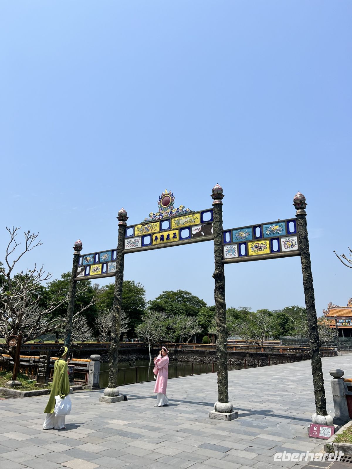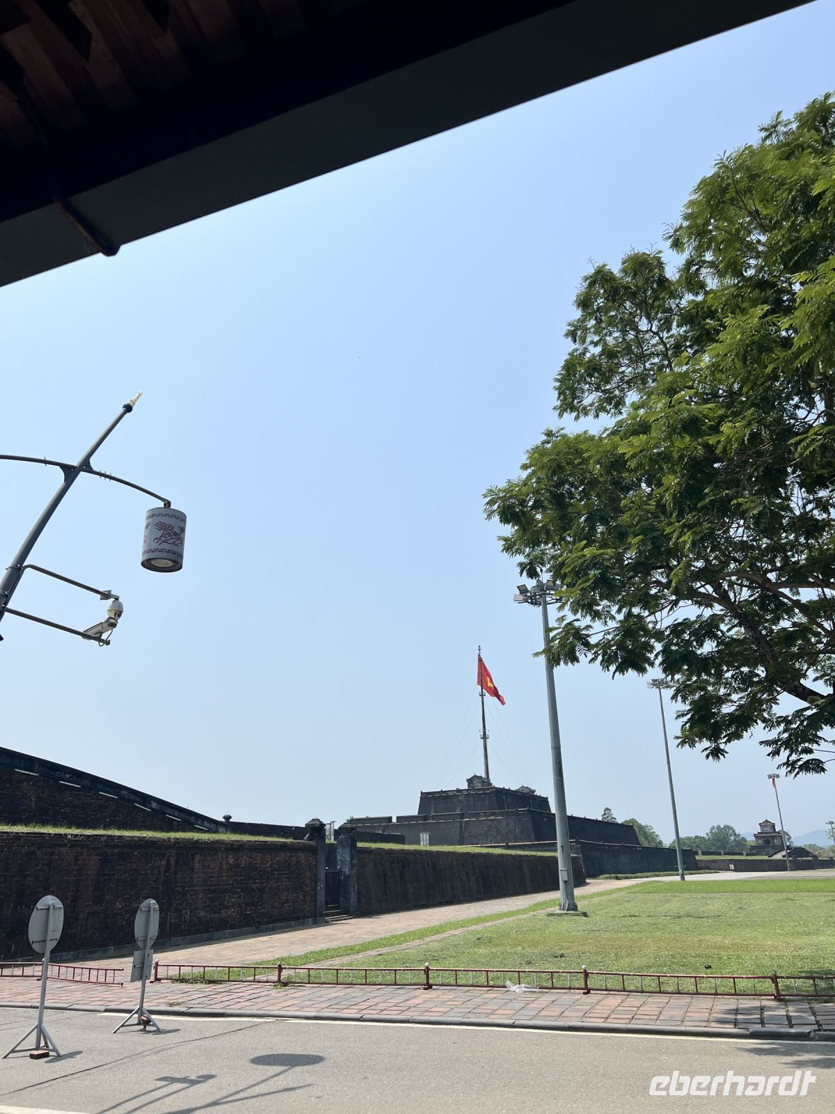 Im Anschluss fuhren wir mit unserem örtlichen Reisebus zur Zitadelle und zum Kaiserpalast mit der verbotenen Stadt. Hue war von 1802 bis 1945 die Hauptstadt der letzten Kaiserdynastie der Nguyen´s. Die Kaiser der Nguyen´s, nahmen die kaiserlichen Anlagen von Peking als Vorbild und seit 1993, steht die verbotene Stadt im Schutz des UNSECO – Weltkulturerbes.