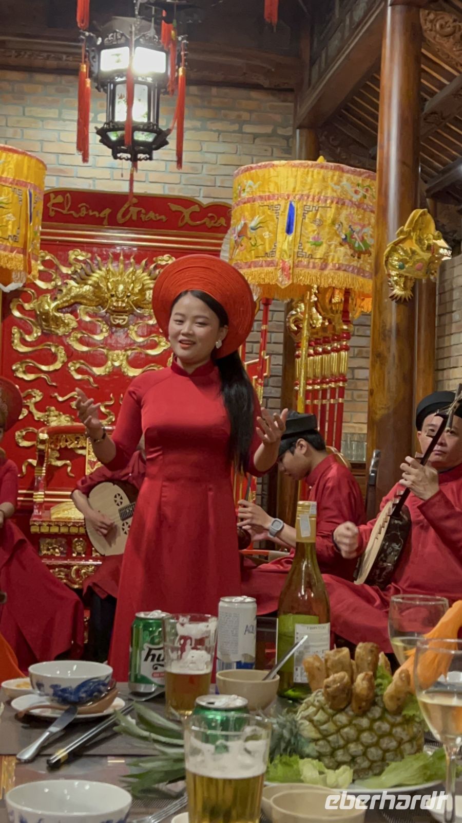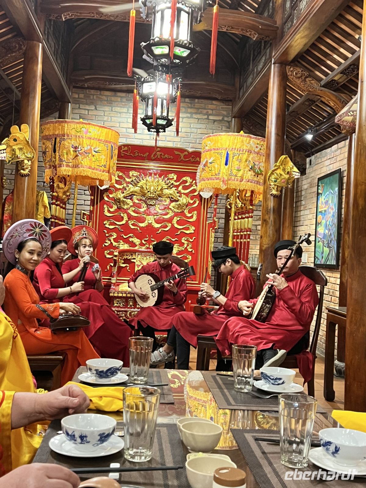 Wir aßen ein weiteres 8-Gänge Menü mit traditioneller Hue Musik und traditionellen Trachten.