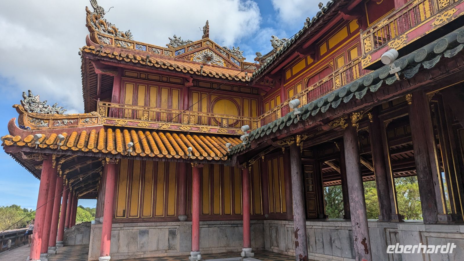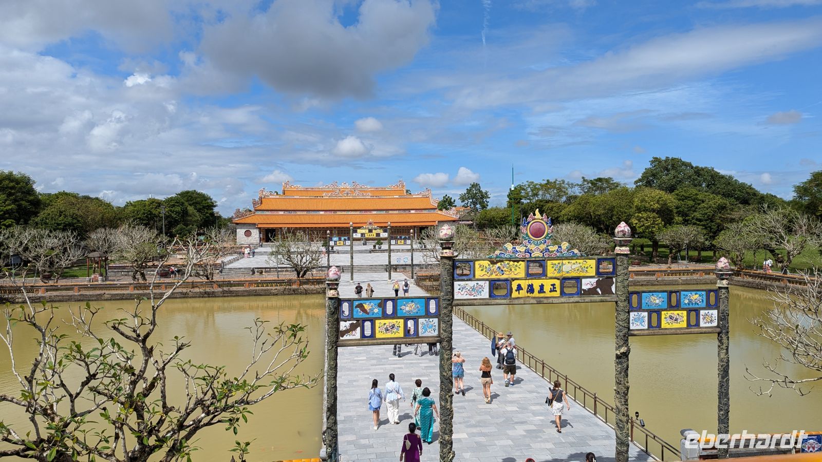 Von dort aus fuhren wir weiter zum Kaiserpalast, dem absoluten Highlight von Hue. Die weitläufige Anlage, auch Verbotene Stadt genannt, war einst der Sitz der Nguyen-Dynastie, der letzten vietnamesischen Kaiserfamilie. Innerhalb der dicken Mauern und Tore konnten wir prachtvolle Tempel, Pavillons, Tore und kunstvoll verzierte Hallen bewundern, eine eindrucksvolle Reise in die Vergangenheit Vietnams.