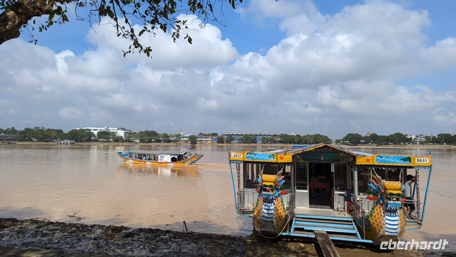 Heute erkundeten wir das Mekong-Delta bei einer Speedboot Fahrt. Nach der Abholung im Hotel ging es zunächst auf den Saigon River, wo wir unser Boot ganz für uns allein hatten. Die Crew kümmerte sich herzlich um uns, besonders kulinarisch: Jedes Mal, wenn wir zurück an Bord kamen, wartete schon frisches tropisches Obst auf uns.