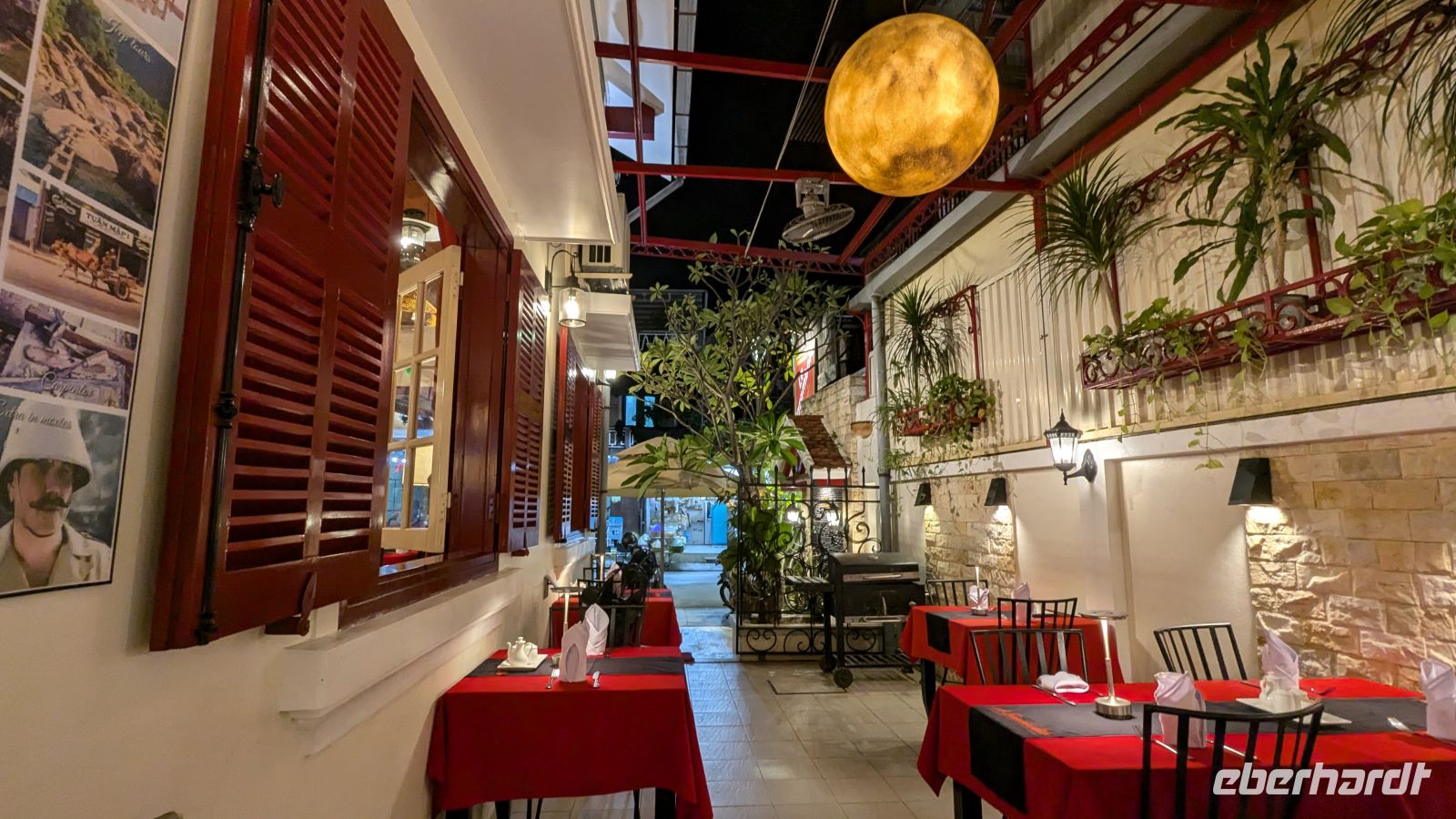 Anschließend ging es zum Frühstücksbuffet, das mit seiner riesigen Auswahl beeindruckte. Doch nicht nur das Frühstück, auch das Hotel selbst begeisterte uns: im französischen Kolonialstil erbaut, mit überaus freundlichem Personal und elegant eingerichteten Zimmern. Die hohen Betten und die fast königliche Ausstattung sorgten für ein besonders stilvolles Ambiente.