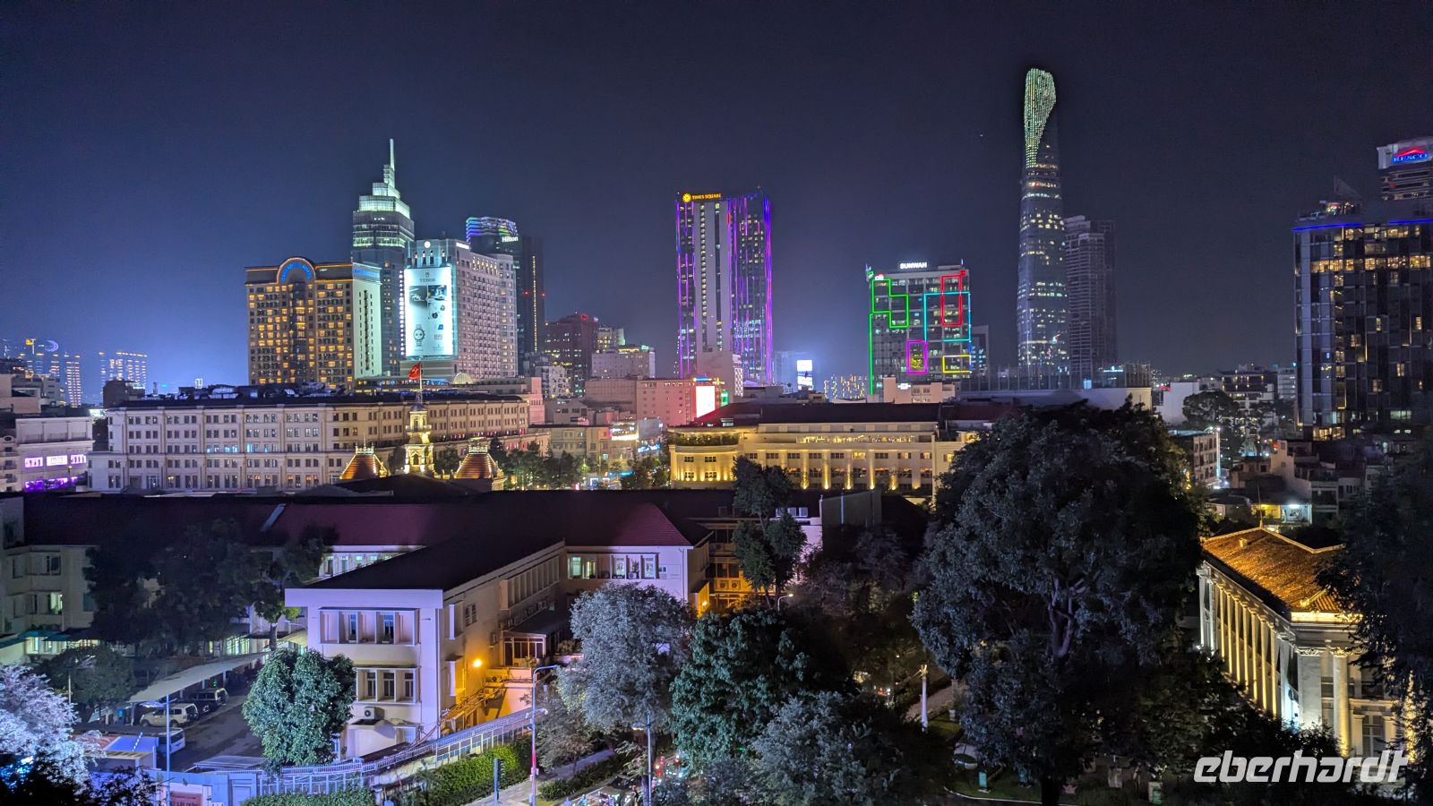 Am Abend trafen wir uns alle wieder zum gemeinsamen Abschlussessen im „Saigon Grill“, einem Restaurant auf einer Dachterrasse mit wunderschöner Aussicht. Hier lud uns Eberhardt Travel auf einen Drink ein und wir ließen uns das gute Essen schmecken.