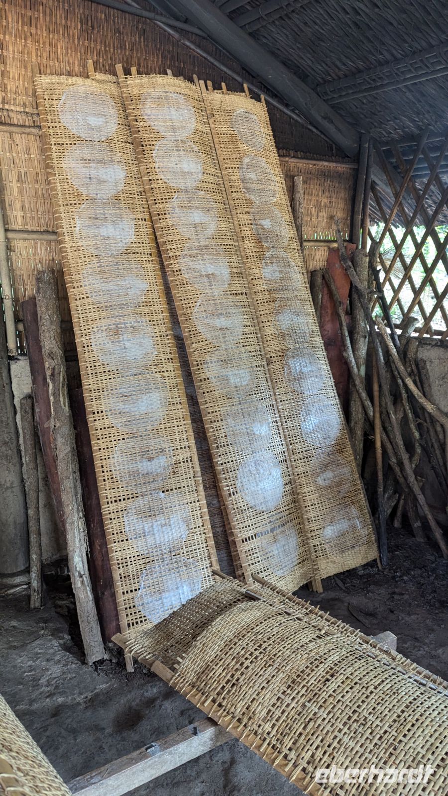 Anschließend fuhren wir weiter in ein nahegelegenes Dorf, um dort einen ausgiebigen Spaziergang zu machen und mehr über das Leben der Einheimischen zu erfahren. Nach einer kurzen Teepause liefen wir los und konnten hautnah miterleben, wie Reis gepflanzt, geerntet, getrocknet und geschält wird. Überall um uns herum arbeiteten die Dorfbewohner auf den Feldern, und wir bekamen einen faszinierenden Einblick in ihren Alltag. Hier hatten wir auch die Möglichkeit, Zuckerrohrsaft mit Kumquat zu probieren. Wir sahen kleine, liebevoll gestaltete Unterkünfte, üppig grüne Gärten und viele herzliche Menschen. Nur wenige Touristen waren hier unterwegs, was den Ort besonders authentisch wirken ließ.