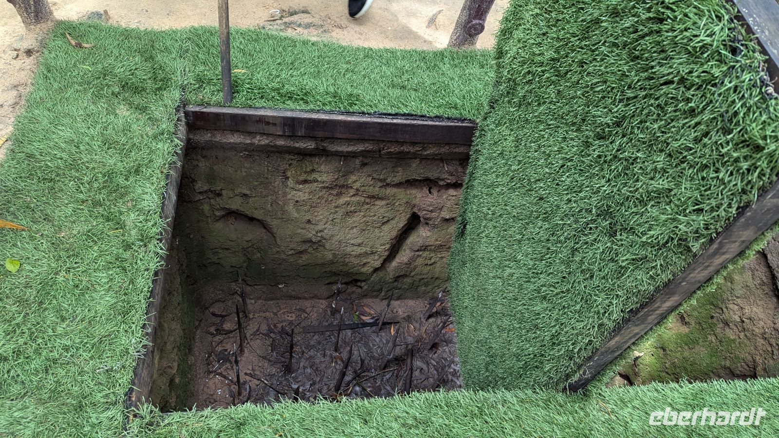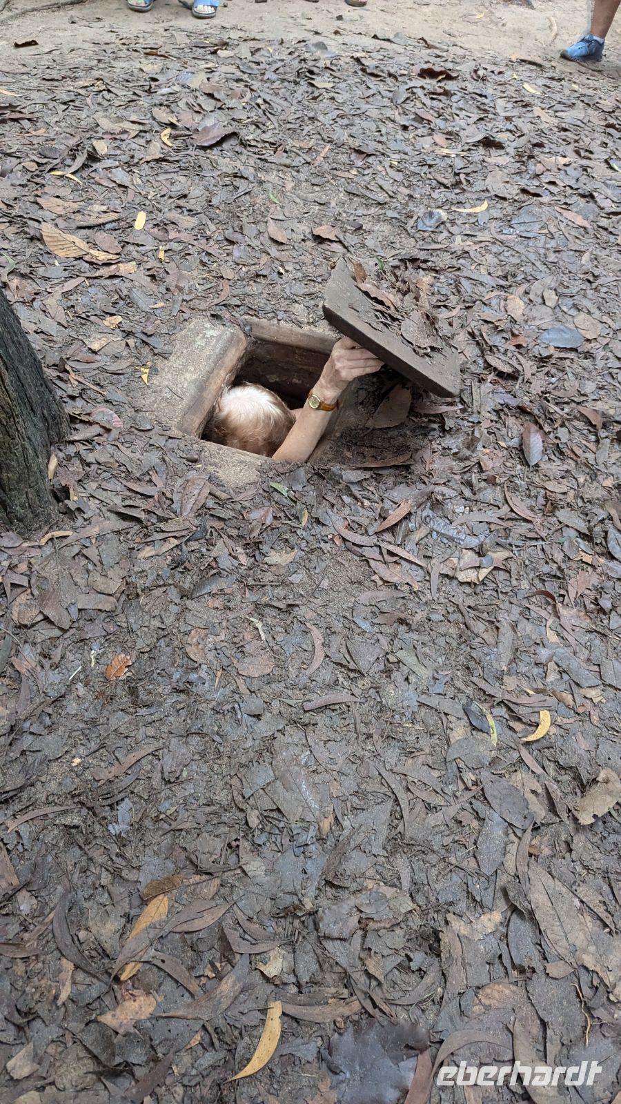 Ein Teil unserer Gruppe machte sich hingegen auf zu einem spannenden Tagesausflug zu den Cu-Chi-Tunneln, einem weit verzweigten unterirdischen Tunnelsystem aus der Zeit des Vietnamkriegs. Hier lebten, arbeiteten und kämpften einst vietnamesische Widerstandskämpfer, teils monatelang unter der Erde. Es war beeindruckend zu sehen, wie komplex das System mit Wohnräumen, Küchen und sogar Krankenstationen angelegt war. Wer wollte, konnte selbst ein Stück durch die engen Gänge kriechen, ein eindrückliches Erlebnis, das einem die Geschichte des Landes noch näherbrachte.