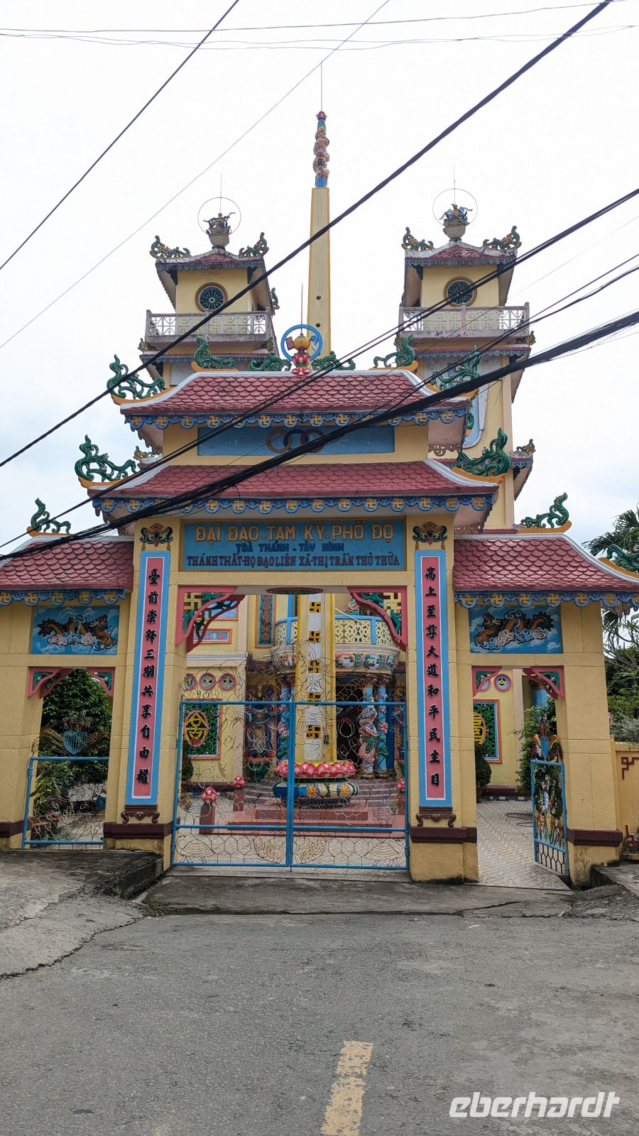 Weiter ging es in einen kleinen Ort, wo wir den Tay-Ninh-Markt besuchten, einen lebhaften lokalen Markt voller bunter Stände und interessanter Düfte. Gleich nebenan lag der Cao-Dai-Tempel, bekannt für seine leuchtenden Farben und die einzigartige Mischung aus verschiedenen Religionen wie Buddhismus, Christentum und Konfuzianismus.