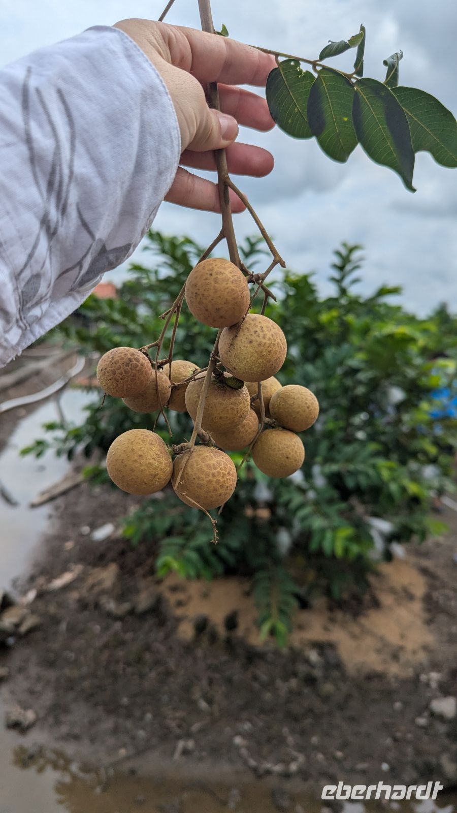 Während der Fahrt zogen schwimmende Häuser und einfache Siedlungen am Ufer vorbei, ein faszinierender Einblick in das Leben der Menschen am Fluss. Unser erster Halt war auf einer Obstfarm, wo uns der Bauer zeigte, wie er Longans, Guaven und andere Früchte anbaut. Natürlich durften wir auch alles probieren.
