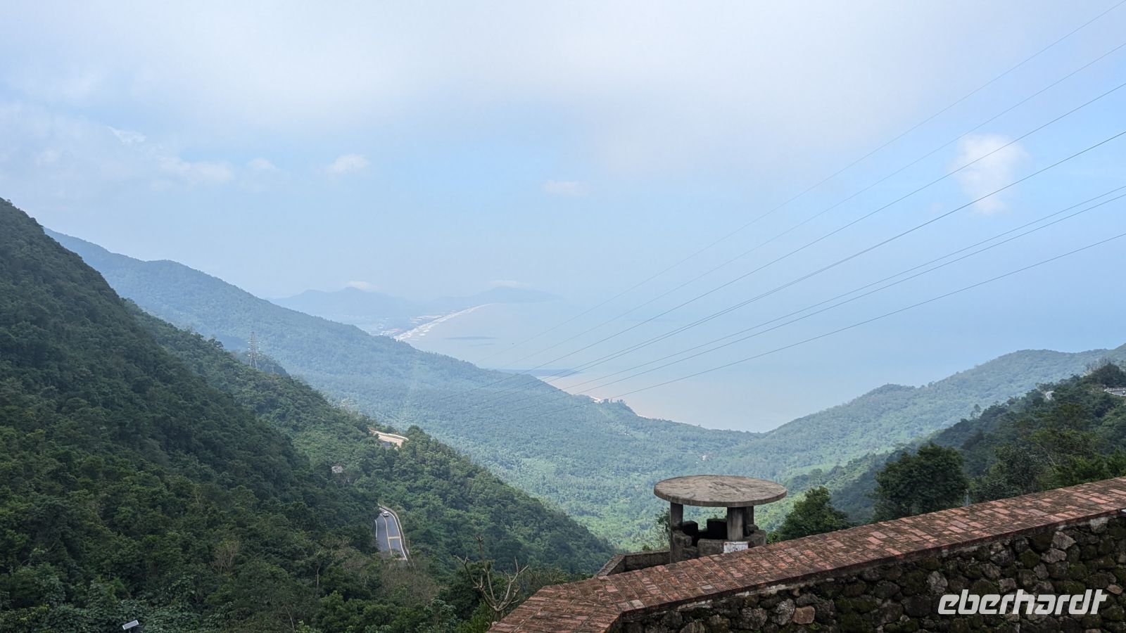 Während unserer Fahrt über den Wolkenpass boten sich uns spektakuläre Ausblicke. Auf etwa 500 Metern Höhe konnten wir tief unter uns die Eisenbahnlinie erkennen, die von Da Nang nach Hue verläuft. Unser nächster Halt war am Hai Van Gate, einer alten Passhöhe mit steinernen Mauern, die einst als Grenzposten zwischen Nord- und Südvietnam diente. Historisch ist der Ort bedeutsam, da hier über Jahrhunderte hinweg verschiedene Reiche ihre Grenzen markierten und Handel betrieben.