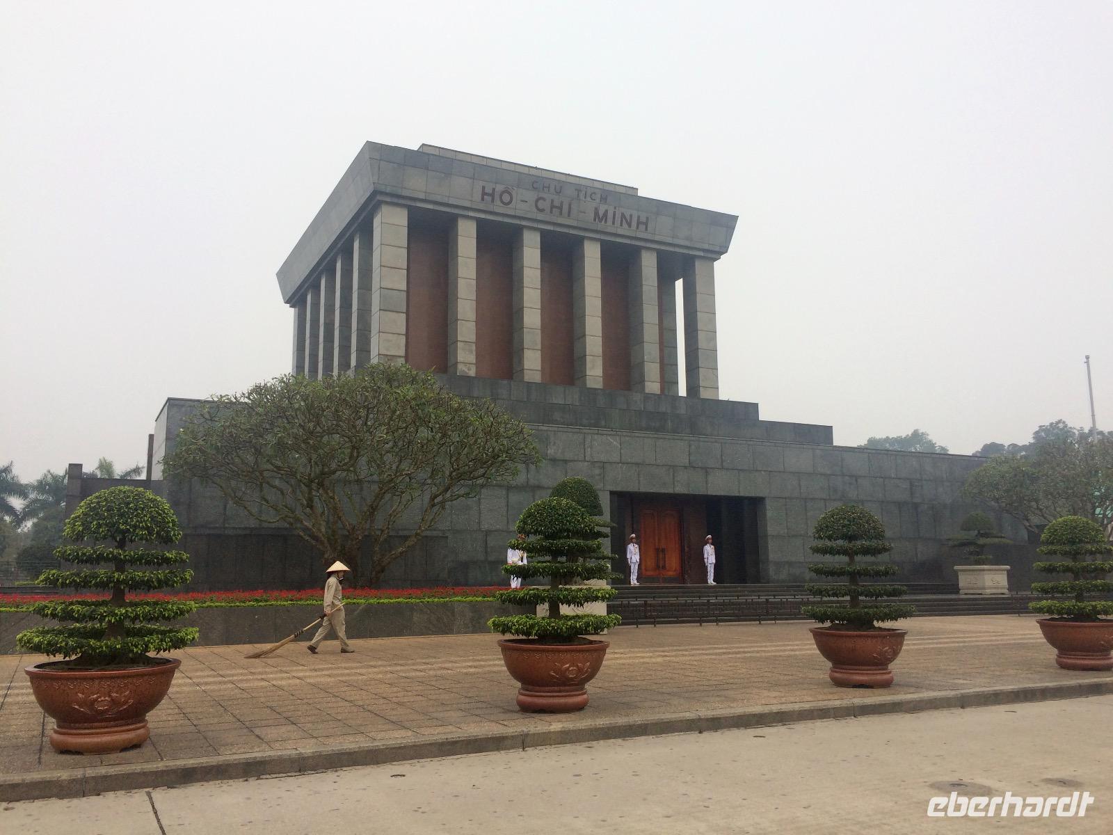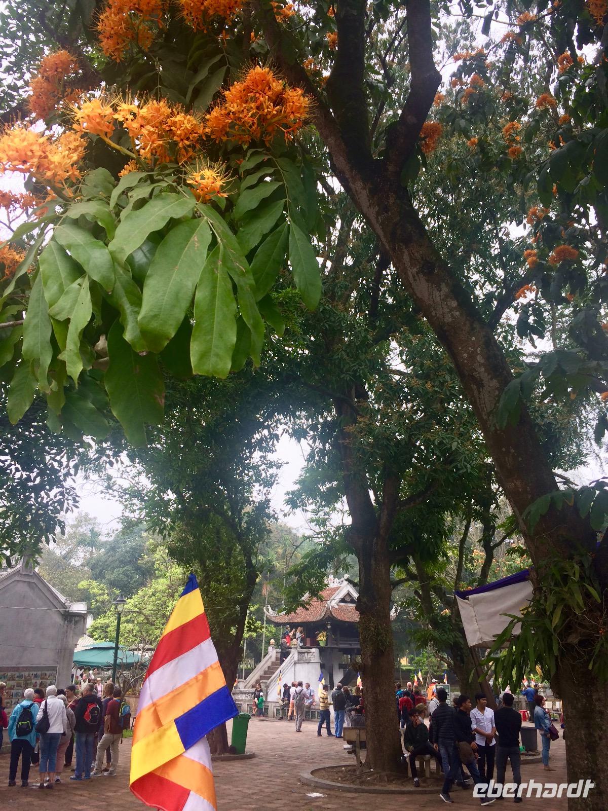 Reiseleiter Si Anh und Chauffeur Hung, der Held, begleiten uns auf Erkundungstour durch die Hauptstadt Hanoi. Bereits zum Morgenanbruch geht es in der Stadt so richtig ab. Millionen Mopeds fahren Mal gemeinsam in einer Traube wie ein großer Fischschwarm und das andere Mal kreuz und quer durcheinander. Hier müssen doch ständig Unfälle passieren, denken wir uns. Doch das Chaos hat sonderbarerweise seine Logik und es funktioniert. Unsere erste Destination ist ein Muss für jeden Vietnambesuch: Das Mausoleum von Ho Chi Minh. Onkel Ho, wie die Vietnamesen ihn nennen, wird vom ganzen vietnamesischen Volk hoch geachtet und geliebt... er habe geweint angesichts der Armut im Land und habe die Freiheit und Einigkeit gebracht. Onkel Ho wurde 1890 als Nguyen Sing Cung geboren. Er reiste viel auf der Welt, unter anderem auch nach Frankreich, England, USA, Sowjetunion und China. In Frankreich trat er 1920 der Kommunistischen Partei bei. In Moskau und Goangzhou bildete er sich fort, wo er mit weiteren Vietnamesen die Gründung der Kommunistischen Partei Vietnams organisierte. Im Jahre 1941 wurde er zum Anführer und zur Symbolfigur der vietnamesischen Unabhängigkeitsbewegung. Von 1955 bis zu seinem Tod im Jahr 1969 war er Präsident von Vietnam. Im Laufe seines Lebens nahm er viele Aliasse an. Ho Chi Minh bedeutet Derjenige, welcher die Erleuchtung bringt. Vorbei am ehemaligen Präsidentenpalast, in dem noch heute Staatsgäste empfangen werden, gelangen wir zum Wohnhaus des legendären Politikers. Wir sehen, dass er gern einfach und bescheiden lebte, die Ruhe und die Natur liebte. Zu Fuß spazieren wir bis zur Ein-Säulen-Pagode. Si Anh beschreibt uns, dass die Ein-Pfahl-Pagode, wie sie auch genannt wird, die Form einer Lotusblume gebaut ist. Die Lotusblume ist das Symbol für den Buddhismus sowie das Symbol für Vietnam. Der Legende nach erschien dem kinderlosen König Ly Thai To im Traum eine auf einer Lotusblüte sitzende Göttin und überreichte ihm einen Sohn. Als er kurzer Zeit später tatsächlich Vater wurde, ließ er diese Pagode aus Dank erbauen. Die Lotusblume ist eine wunderbare Blume, die in Seen und feuchten Moorgebieten wächst. Obwohl sie aus dem dunklen Moor kommt, sind ihre Blätter und Blüten stets rein und wunderschön.