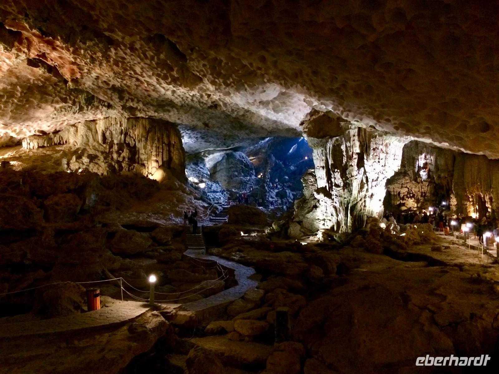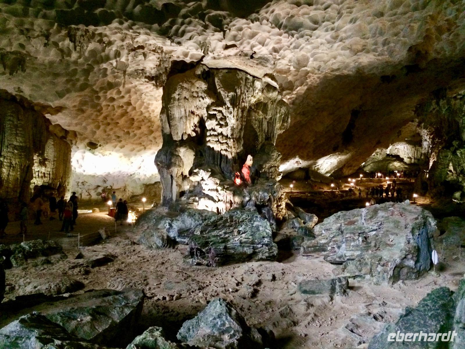 Der Morgen auf See setzt das Schauspiel der Natur fort. Zum Sonnenaufgang begrüßen wir den neuen Tag, gießen die angenehme Ruhe und den frisch gebrühten Kaffee. Jetzt gibt es die Möglichkeit, die große Tropfsteinhöhle Sung Sot (zu Deutsch Überraschungshöhle) zu besuchen. Sie ist wahrscheinlich ein Wunderwerk von Skulpturen in Form von Tropfsteingebilden und Auswaschungen, welches die Natur über Zeiträume von Jahrhunderten erschaffen hat. Vorhang auf für Mutter Natur! Erstaunlich, dass die Staltagmiten und Stalagtiten alle 7 - 10 Jahren nur ca. einen Millimeter wachsen.