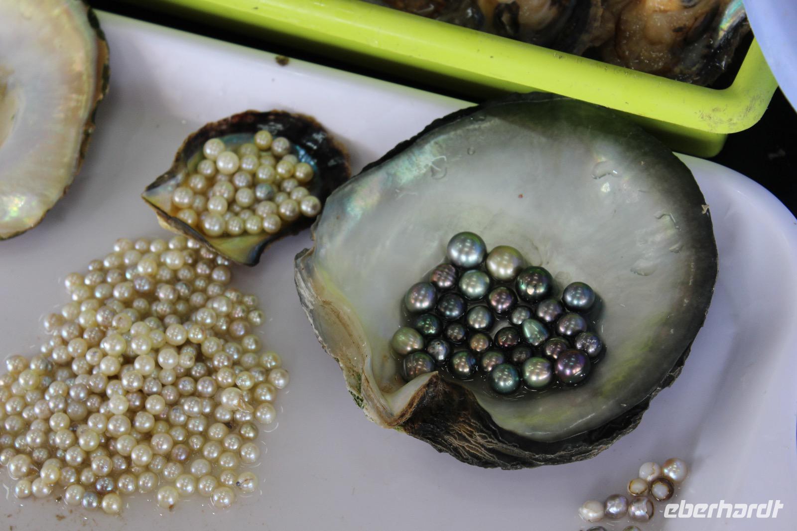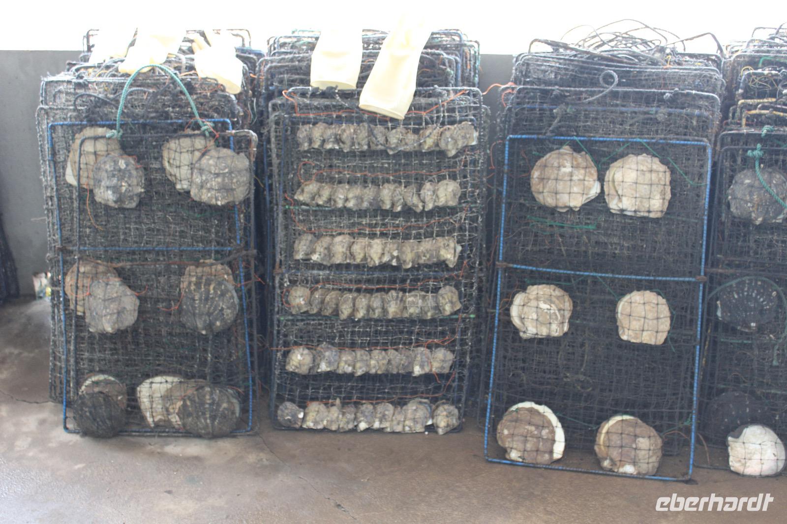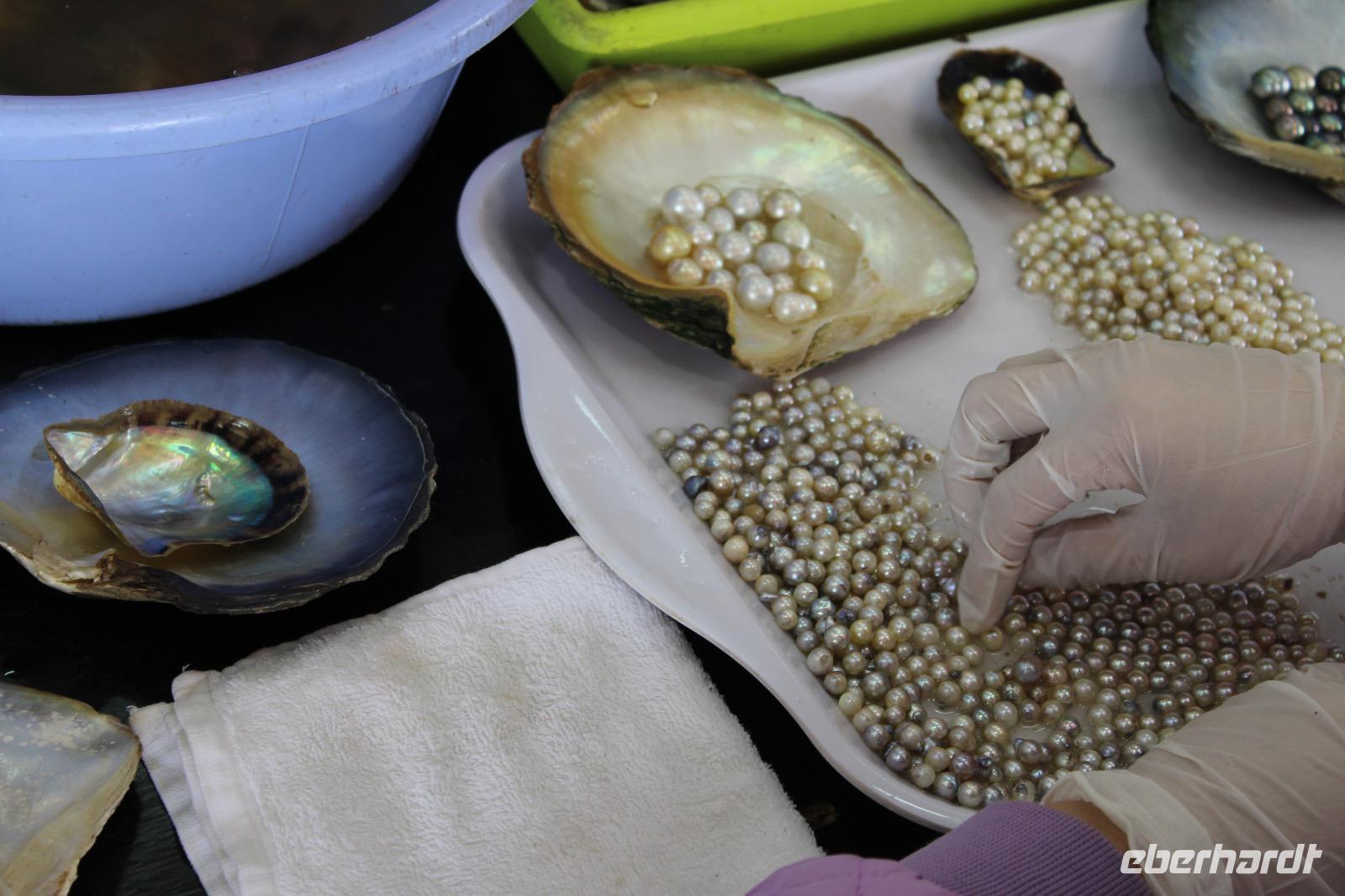 In einer Werkstatt auf der Route bekommen wir vorgeführt, wie Muscheln in Vietnam gezüchtet werden und welche Tricks es gibt, um echte Perlen von unechten zu unterscheiden.