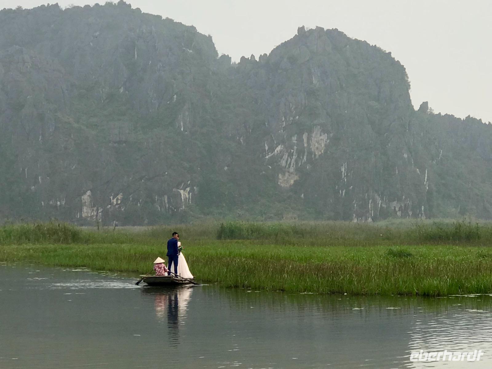 Zur Abwechslung zeigt sich am Morgen die Sonne. Wir bewundern ein Hochzeitspaar vor der Japanischen Brücke. Das Paar ist allerdings noch nicht verheiratet verrät Anh. Sie machen zu erst die schöne Paarfotos schon vorher, um sie auf der Hochzeitsfeier den anderen 600 geladenen Gästen präsentieren zu können. Dadurch wird auch sicher gestellt, dass die Gäste auf der richtigen Feier erscheinen, wenn mehrere gleichzeitig stattfinden sollten, ha, ha...