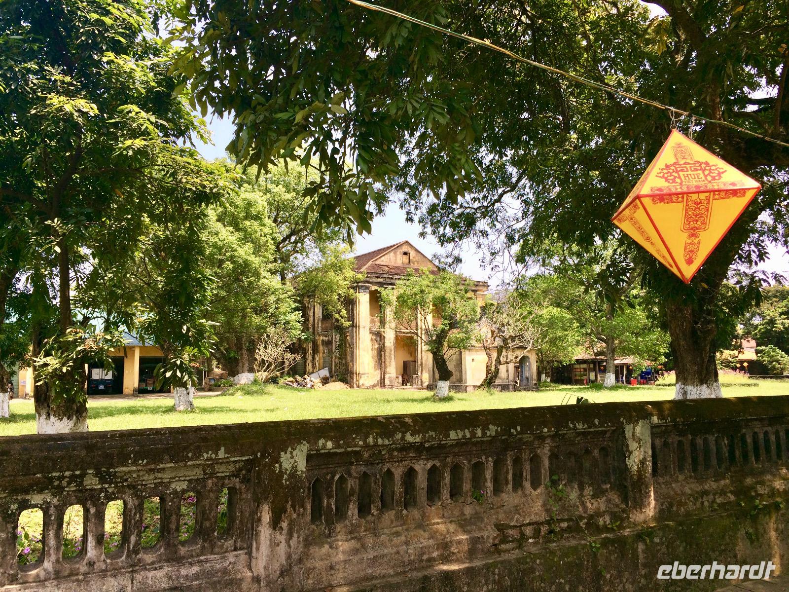 Der Tag widmet sich ganz der Geschichte, Kultur und Architektur, wovon die ehemalige Hauptstadt Hue einiges zu bieten hat. Die beeindruckende Zitadelle prägt noch heute maßgeblich das Stadtbild. Vor noch nicht allzu langer Zeit herrschten in diesem riesigen Areal mächtige Kaiser der Nguyen-Dynastie. Mit dem Bau der Zitadelle 1802, veranlasst von Kaiser Gia Long, begannen die glorreichen Tage von Hue. Vor dem Palast steht der Flaggenturm mit der Königsflagge, die auf drei Stufen steht. Die Stufen symbolisieren die drei wichtigen Bedingungen für ein König: Volk, Erde und Himmel. Hue erlebte eine der blutigsten und längsten Schlachten im letzten Vietnamkrieg, der kaum vorstellbar aber bekanntermaßen länger als der 2. Weltkrieg andauerte. Wenigstens aufgrund des religiösen und kulturhistorischen Status verbot es sich für die Amerikaner, die Stadt zu bombardierenden, so wurde im Häuserkampf vorgegangen. Die Zitadelle konnte jedoch nicht eingenommen werden; nun setzten sie doch gezielte Bomben-und Napalm-Abwürfe gegen Zitadelle und Kaiserpalast ein. Wir sehen nicht nur in den Ausmaßen überwältigende Anlagen, wir sind Zeugen des im Gang befindlichen und noch lang währenden Prozesses des Wiederaufbaus und der Restauration, mit staunenswerten Resultaten... Damals war das innere von einer lilanen Mauer umringt, die heute leider nicht mehr steht. Aber der Name Purpurne Verbotene Stadt ist ihr erhalten geblieben. Anders als in China ist der vietnamesische Kaiserpalast kleiner, dafür grün bepflanzt, er besitzt eine Halle der Ahnenverehrung und eine Pagode. In den Anlagen des Palastes zeigt Chien uns die Charakteristiken des Baustils, die sich größtenteils an die Feng-Shui-Prinzipien richten. Beispielsweise kommt ein Drache selten allein, sondern immer mit einer Wolke und hinter jedem Eingang gibt es eine Stufe oder besser noch eine Geistermauer. Geister sind nach vietnamesischer Vorstellung dumm und können sich nur geradeaus auf einer Ebene bewegen. Na, wenn all das keine bösen Geister fern hält... Oder im vietnamesischen Zuhause werden die in Deutschland genannten Hausdrachen hier Hauslöwinnen bezeichnet. Chien weiht uns in die interessanten Geschichten des Kaiserlebens ein. Es gibt viel zu hören, was kaum in einer schriftlichen Lektüre nachzulesen ist. Am besten merken wir uns, dass niemand den Kaiser ins Gesicht blicken durfte, ihn auch besser nicht verägern sollte und seine Konkubinen nackt in Teppichen eingerollt wurden um keine Waffen verstecken zu können, sonst würden drei Generationen des Schuldigen geköpft werden. Zack, zack, zack!