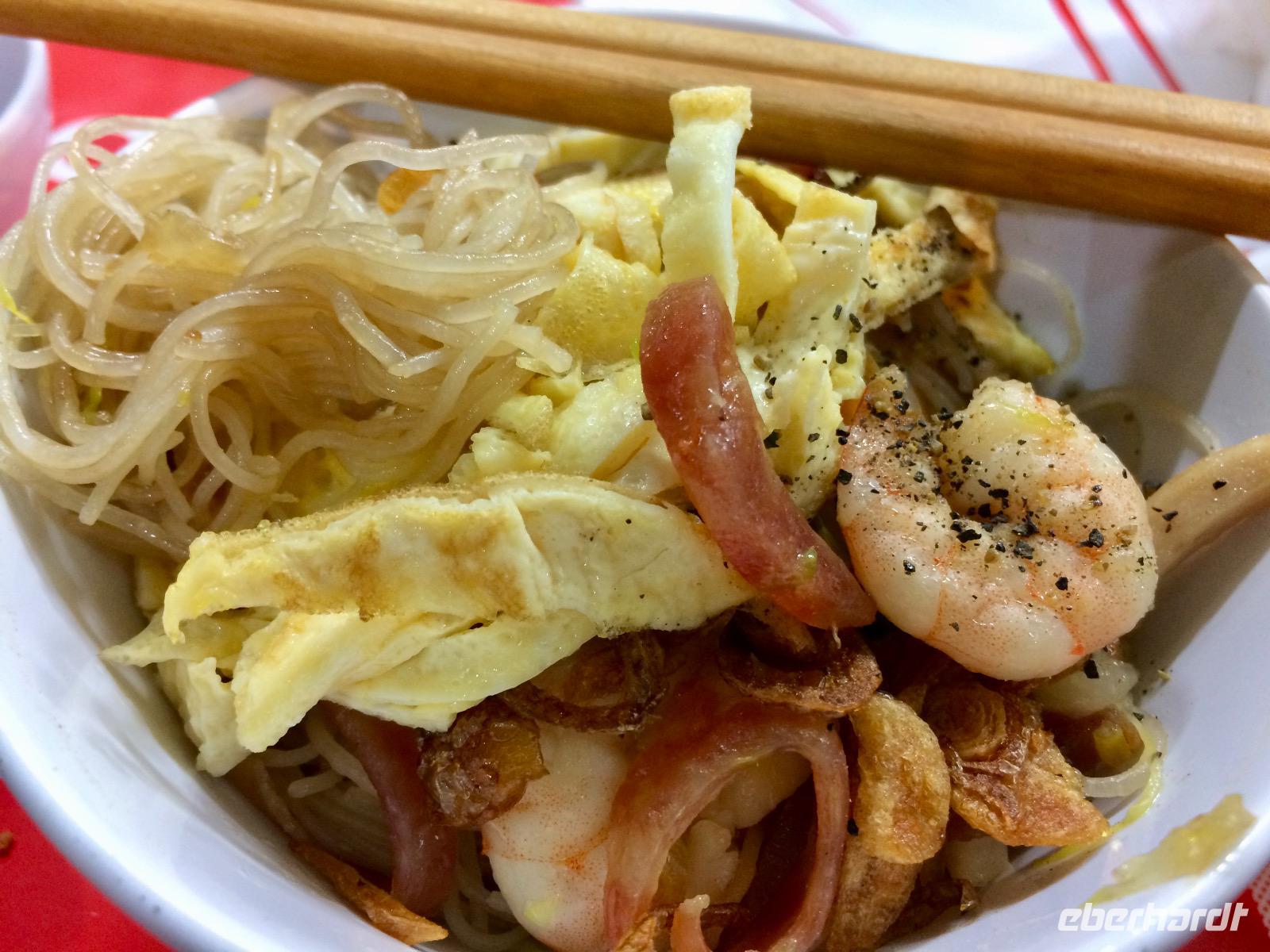 Schnell kommen wir zur Spezialität von Saigon an: Banh Xeo - Crepes aus Reismehl mit Sprossen, Garnelen sowie Schweinefleisch. Die Riesen-Crepes werden aber nicht so einfach gegessen, sondern vorher liebevoll mit frischen Kräutern in Reispapier gewickelt und mit der Hand genascht.