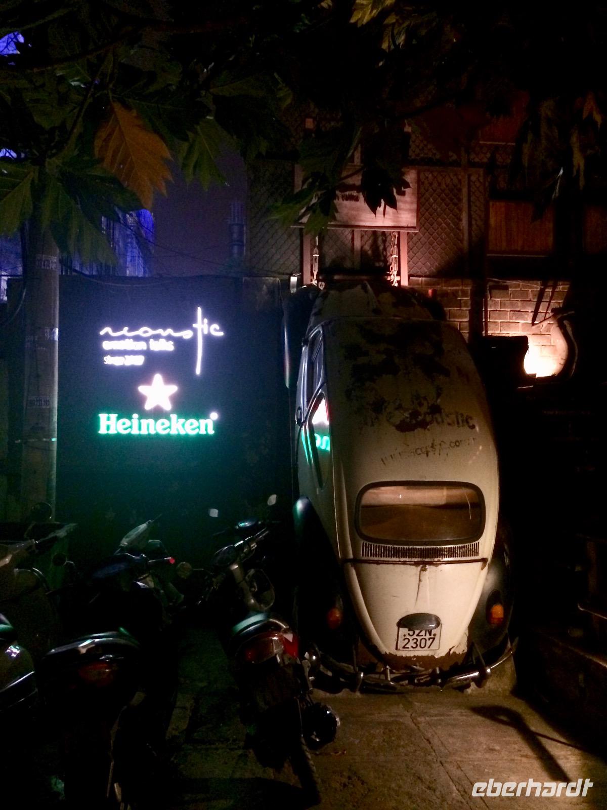 Der Tag ist noch längst nicht vorbei, die Nacht ist jung. Wir kehren bei einer Nachtbar ein. Bei einem Absacker und rockiger Live-Musik stoßen wir auf unser Überleben sowie das besondere Erlebnis Vespafahren in Saigon an. Chears!