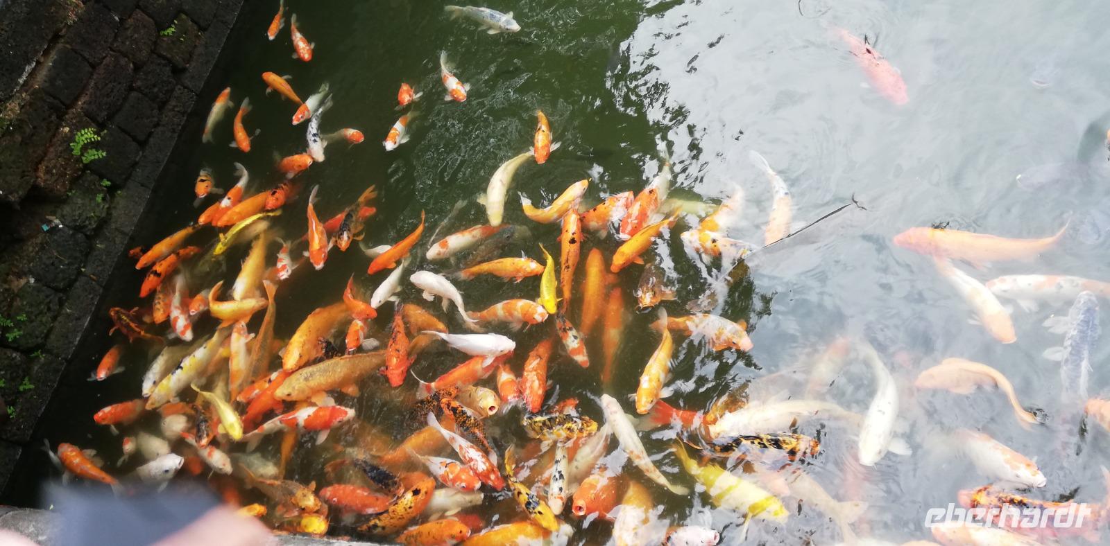 Wir besuchen noch den Präsidentenpalast und die Wohnanlage mit schillernden Kois im Teich. Der Revolutionär wollte nie im prunkvollen großen Palast wohnen, ihm hat eine etwas kleinere Hütte aus Holz inmitten des Geländes völlig ausgereicht. Schlussendlich besuchen wir noch die „Ein-Säulen-Pagode", welche ein Symbol für Fruchtbarkeit und Schönheit darstellt - sie sieht im weitesten Sinne aus wie eine Lotusblüte. Viele gläubige Vietnamesen kommen hierher, um für einen Sohn zu beten - erstgeborene Mädchen stellen hier immer noch Unglück dar.
