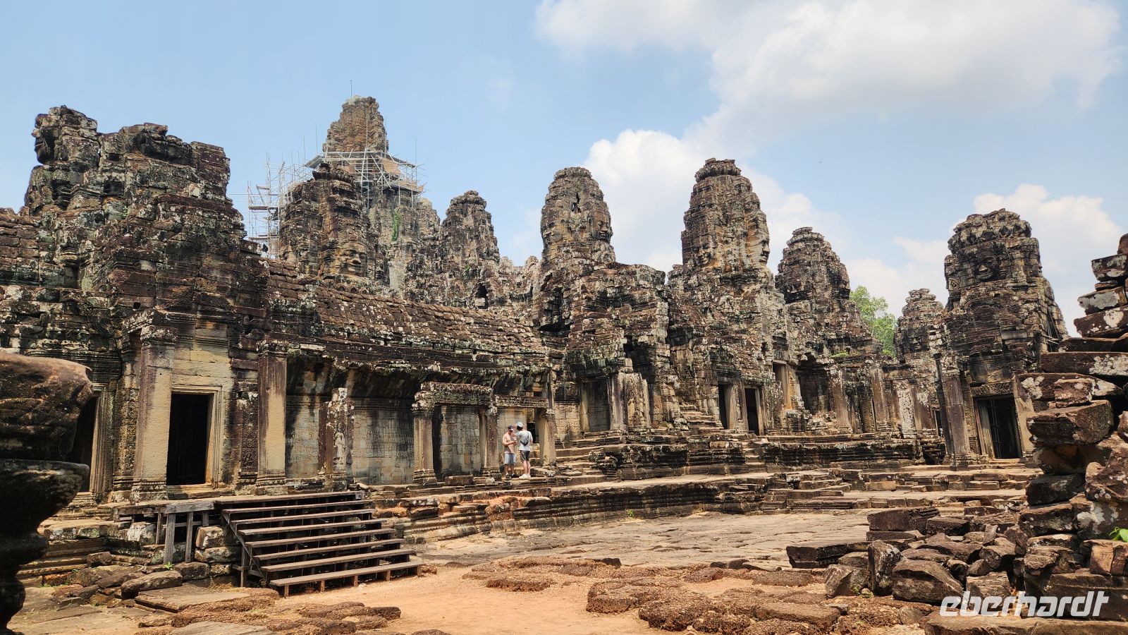 Dort besichtigen wir auch den Bayon-Tempel. Besonders bekannt ist er für seine vielen riesigen Gesichter aus Stein, die in alle Richtungen schauen. Es wirkt fast so, als würden sie uns beobachten – geheimnisvoll und faszinierend zugleich.