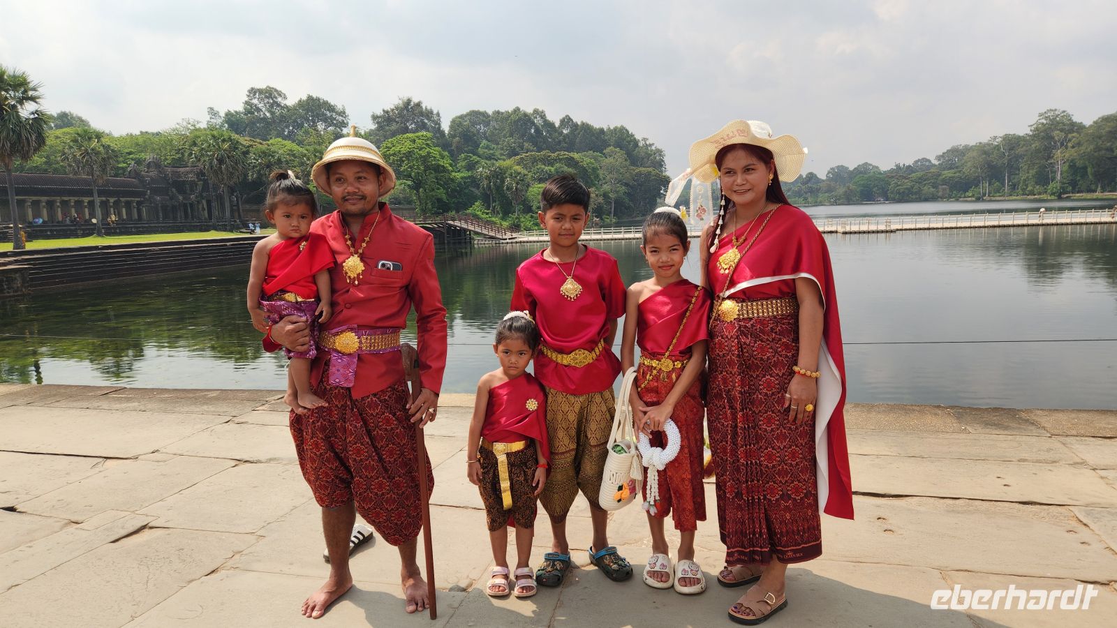 Heute steht ein weiterer Höhepunkt unserer Reise auf dem Programm: der Besuch von Angkor Wat. Für viele Menschen ist es ein großer Traum, diese berühmte Tempelanlage einmal im Leben zu sehen. Angkor Wat ist die größte Tempelanlage der Welt und wurde vor über 800 Jahren erbaut. Ursprünglich war es ein hinduistischer Tempel, später wurde er zu einer buddhistischen Anlage. Die riesigen Türme, die kunstvollen Steinreliefs und die perfekte Symmetrie beeindrucken uns sofort.