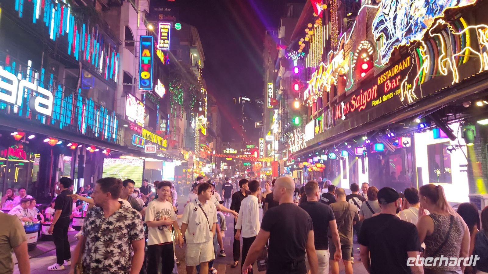 Nach dem Abendessen sind wir noch voller Energie – und beschließen, den Tag richtig ausklingen zu lassen. Unser Ziel ist die bekannte Party-Meile der Stadt, die Bui Vien Street. Hier pulsiert das Nachtleben: Musik, Lichter, Bars und viele Menschen aus aller Welt sorgen für eine ausgelassene Stimmung.