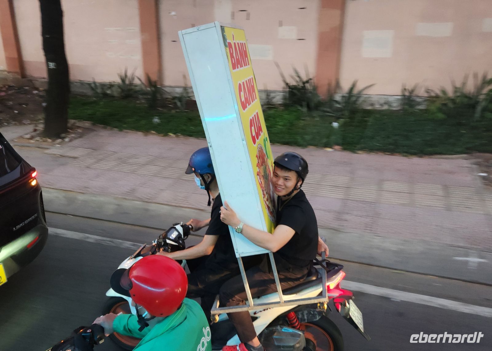 Am Nachmittag machen wir uns auf den Rückweg nach Ho-Chi-Minh-Stadt. Es ist viel Verkehr, da Sonntag ist und viele vietnamesische Familien Ausflüge ins Mekong-Delta gemacht haben. Die Straßen sind voll, doch wir kommen schließlich gut zurück.