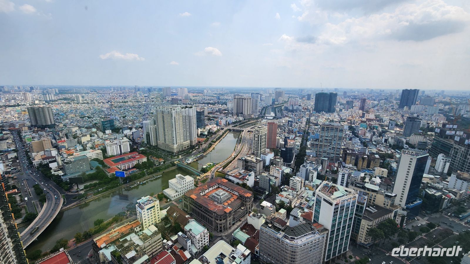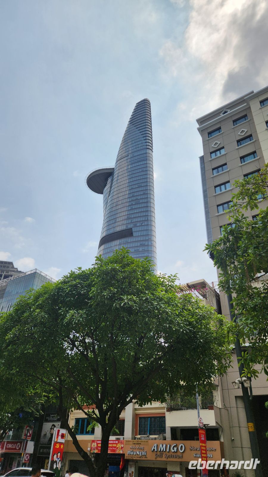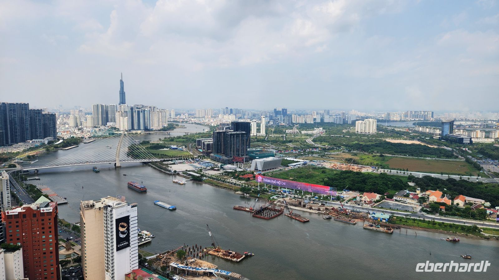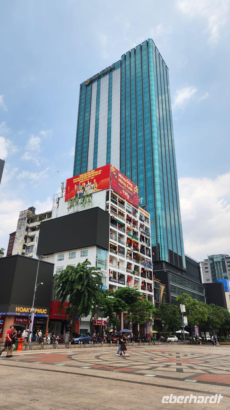 Anschließend spazieren wir zum Rathaus und zum Ho-Chi-Minh-Denkmal und laufen am Stadttheater vorbei. Unser nächster Halt ist der Bitexco Financial Tower, das höchste Gebäude Ho-Chi-Minh-Stadts. Es hat 68 Etagen, und wir fahren spontan auf die 49. Etage hinauf, weil wir genügend Zeit haben! Von dort genießen wir einen atemberaubenden 360-Grad-Ausblick über die ganze Stadt – Wolkenkratzer, Flüsse und die endlosen Straßen liegen uns zu Füßen. Die Aussicht ist einfach überwältigend, und unsere Fotos werden zu echten Erinnerungsstücken.