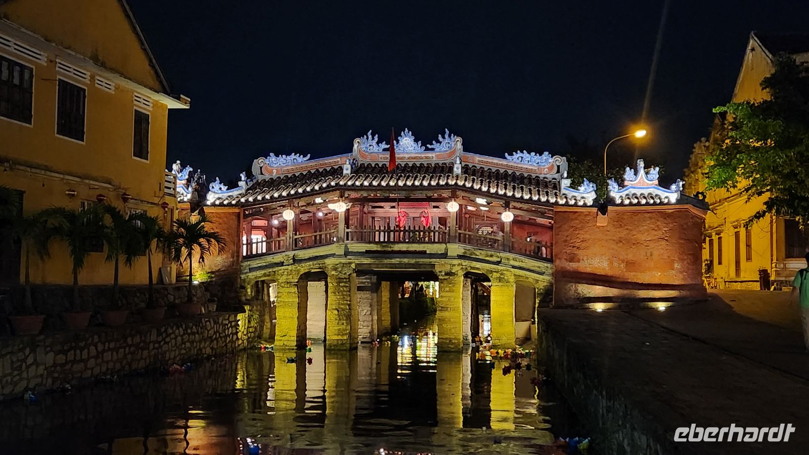 Weiter geht es zur chinesischen Versammlungshalle, die mit ihren Verzierungen und Räucherspiralen beeindruckt. Danach besichtigen wir ein traditionelles Wohnhaus, das uns einen Einblick in das Leben früherer Zeiten gibt. Natürlich darf auch das Wahrzeichen der Stadt nicht fehlen: die berühmte japanische Brücke, die schon seit Jahrhunderten die beiden Stadtteile miteinander verbindet.