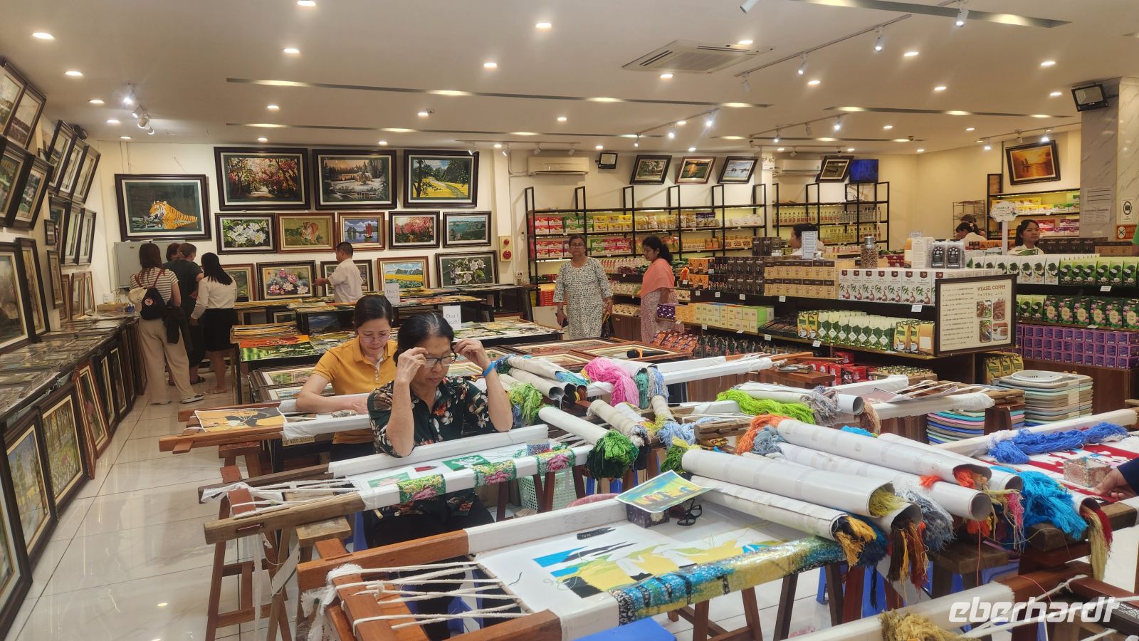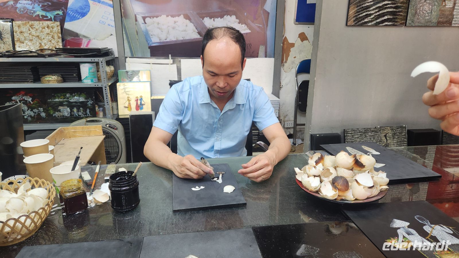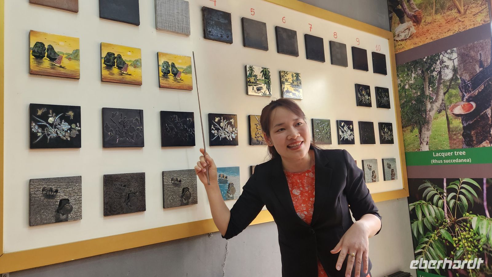 In Hanoi gibt es noch viel zu entdecken. Unser erster Programmpunkt an diesem Tag ist das ethnologische Museum. Auf dem Weg dorthin machen wir einen Zwischenstopp in einer Lackwerkstatt. Hier sehen wir, wie in aufwendiger Handarbeit wunderschöne Bilder entstehen. Aus kleinen Eierschalenstücken werden filigrane Muster gelegt, die anschließend mehrfach lackiert und poliert werden. Diese Technik erfordert viel Geduld und Können – jedes Werk ist ein kleines Kunstwerk.