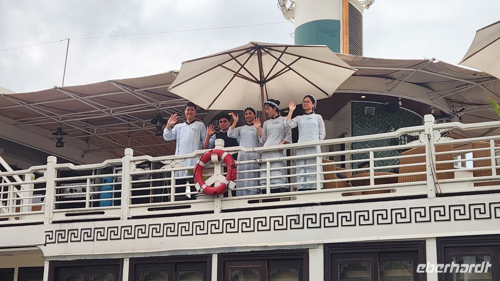 Der Service an Bord ist außergewöhnlich freundlich. Die Crew kümmert sich aufmerksam um uns und erfüllt uns jeden Wunsch. Besonders schön ist auch die Begrüßung: Das gesamte Team verbeugt sich gleichzeitig vor uns – ein sehr respektvoller und beeindruckender Moment, der uns in Erinnerung bleibt.
