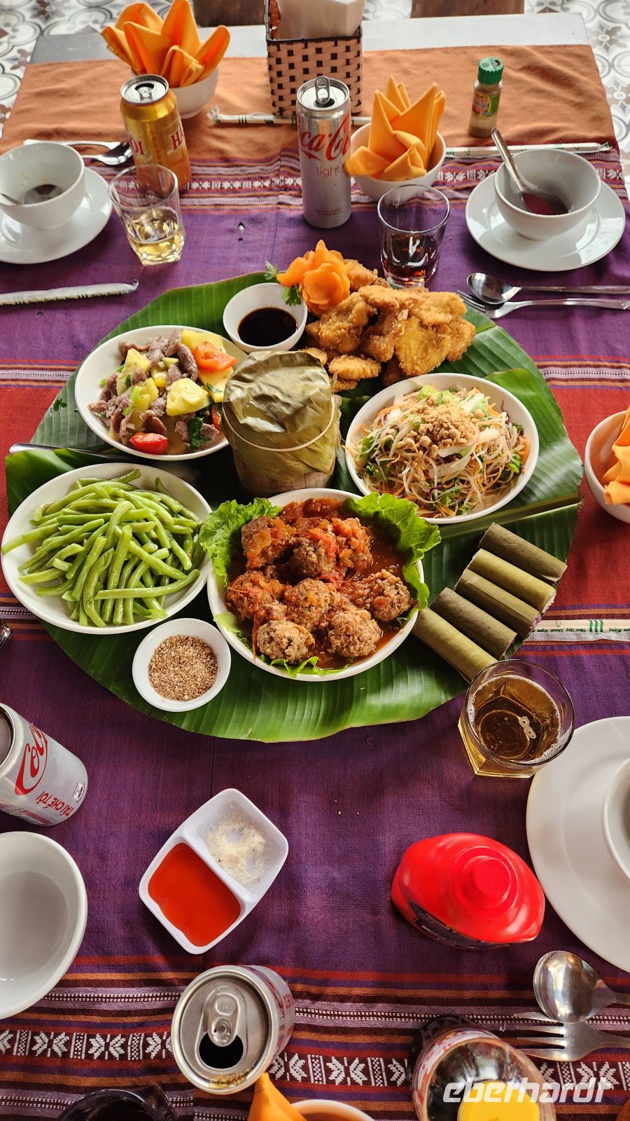 Nach getaner Arbeit setzen wir uns zum gemeinsamen Mittagessen zusammen und probieren alles, was wir selbst gekocht haben. Es schmeckt einfach hervorragend, und wir sind stolz auf unsere selbst zubereiteten Gerichte.