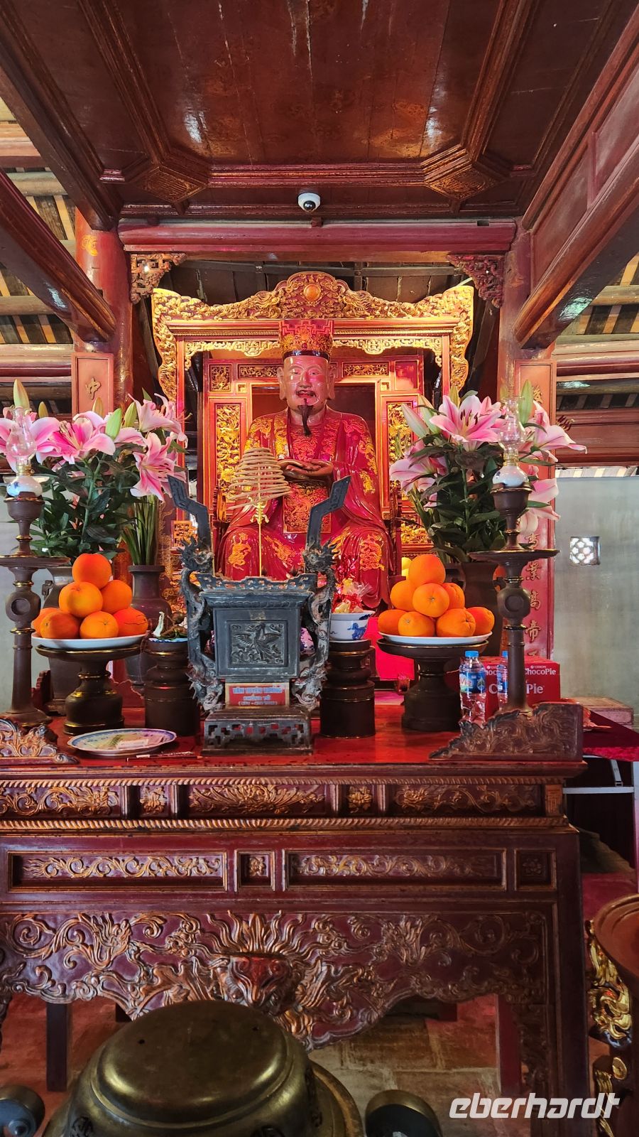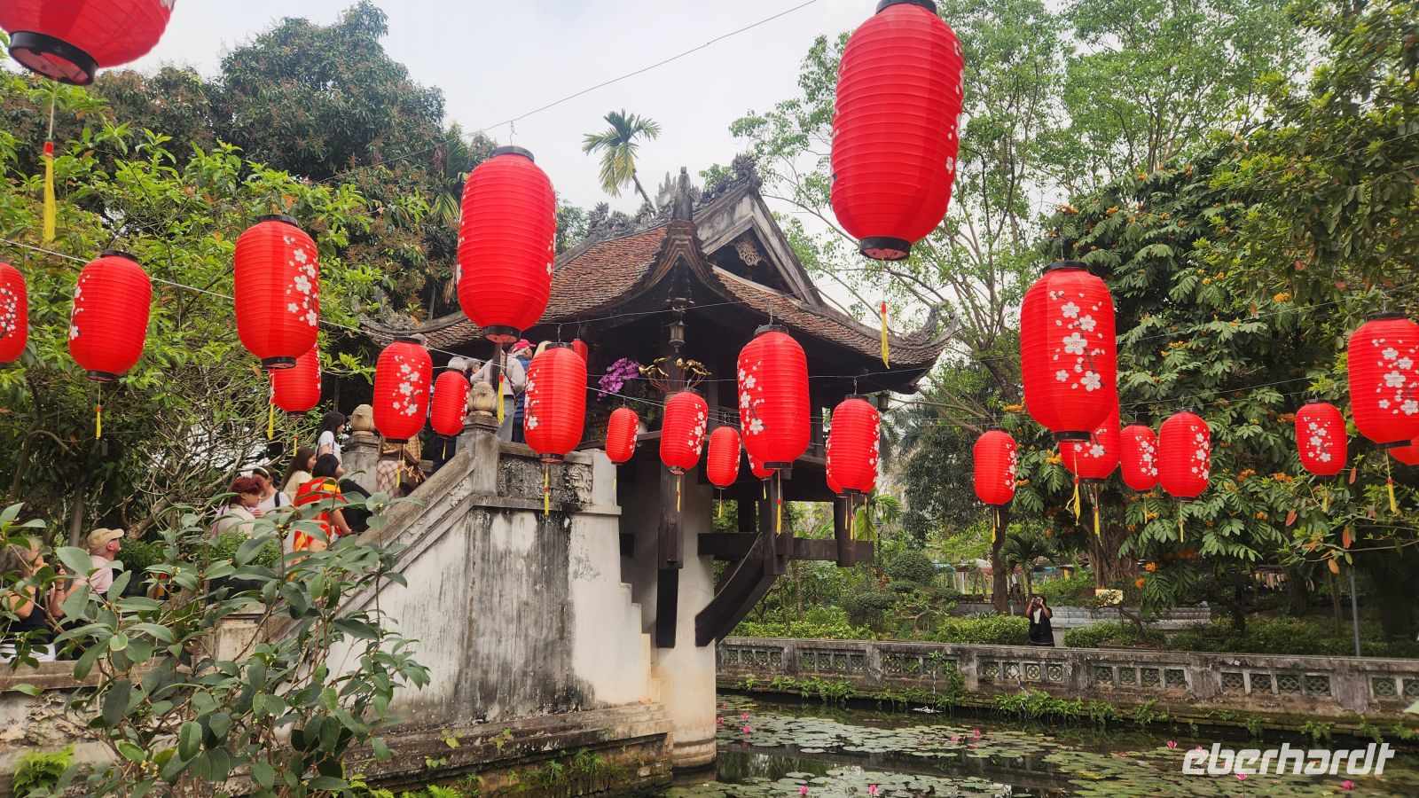 Ganz in der Nähe besuchen wir auch die Ein-Säulen-Pagode. Diese kleine, besondere Pagode steht auf nur einer einzigen Säule mitten in einem Teich und soll an eine Lotusblüte erinnern. Sie ist ein wichtiges Symbol für Hanoi und ein beliebter Ort für Besucher.