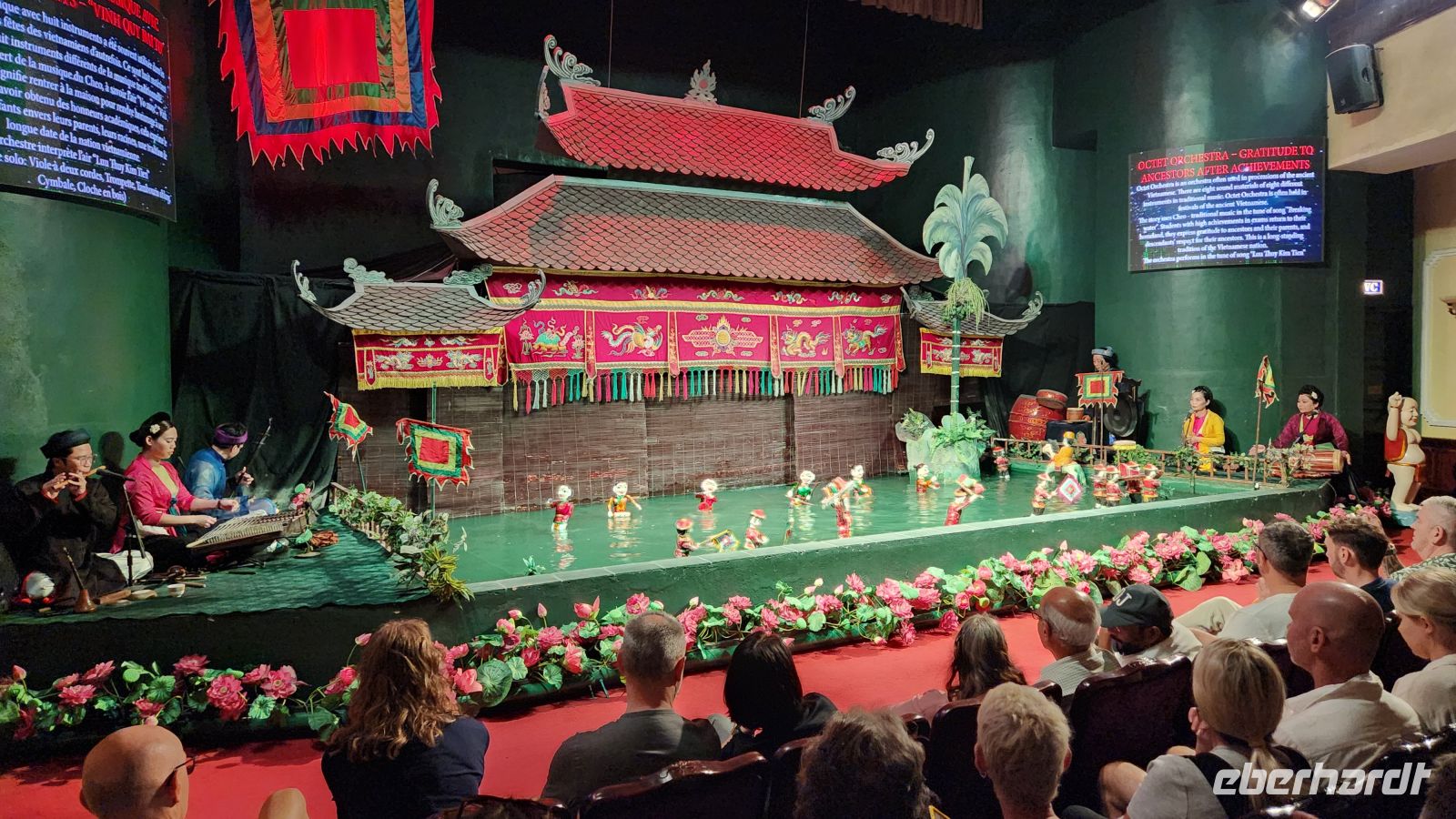 Unser Ziel ist das Wasserpuppentheater. Wir erleben eine zauberhafte Vorstellung, bei der Figuren aus Holz auf dem Wasser tanzen und alte Geschichten erzählen. Begleitet wird das Ganze von traditioneller Musik – ein einzigartiges Erlebnis, das uns allen viel Freude bereitet.