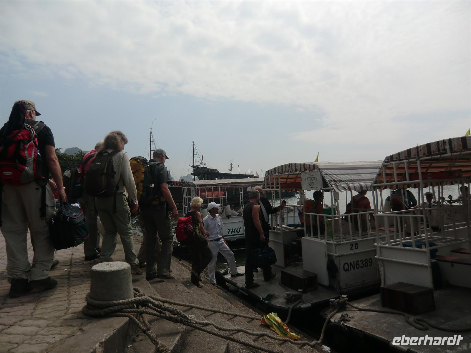 Zurück an Bord hieß es Auschecken und erneut „Essen fassen“. Ein leckerer Brunch versüßte uns den Abschied von der herrlichen Dschunke. Pünktlich 10:45 Uhr schifften wir dann am Hafen von Hon Gai aus und wurden von „Lamm und Lämmchen“ abgeholt, die die Nacht in Ha Long City bei Karaoke verbracht hatten.