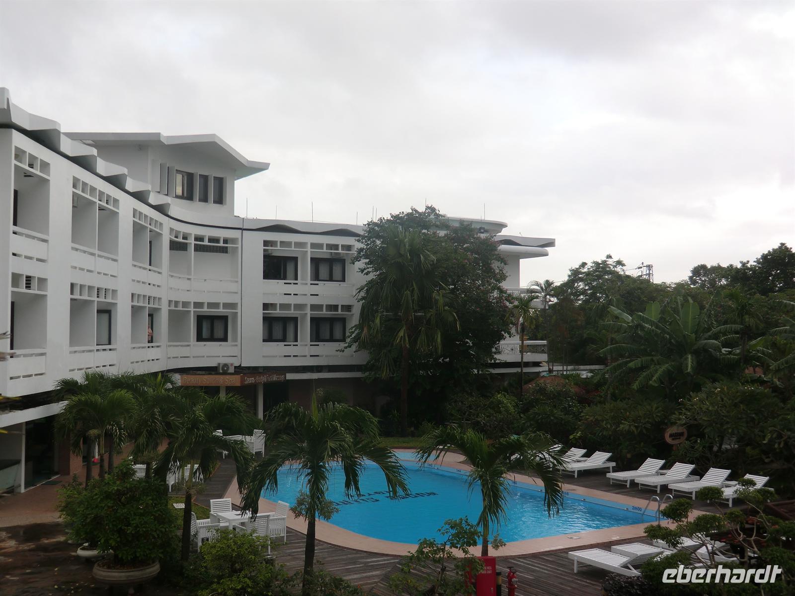 20:10 Uhr startete pünktlich unser Flug und nach nur 1 Stunde Flugzeit landeten wir in der alten Kaiserstadt Hue und wurden von Binh in Empfang genommen. Per Bus fuhren wir in nur 15 Minuten bis zum Hotel „Huong Giang“ am berühmten Parfümfluss. Von unseren Zimmern konnten wir vom Balkon aus noch den wahnsinnig vollen Fluss in der Schwüle dahin fließen sehen.