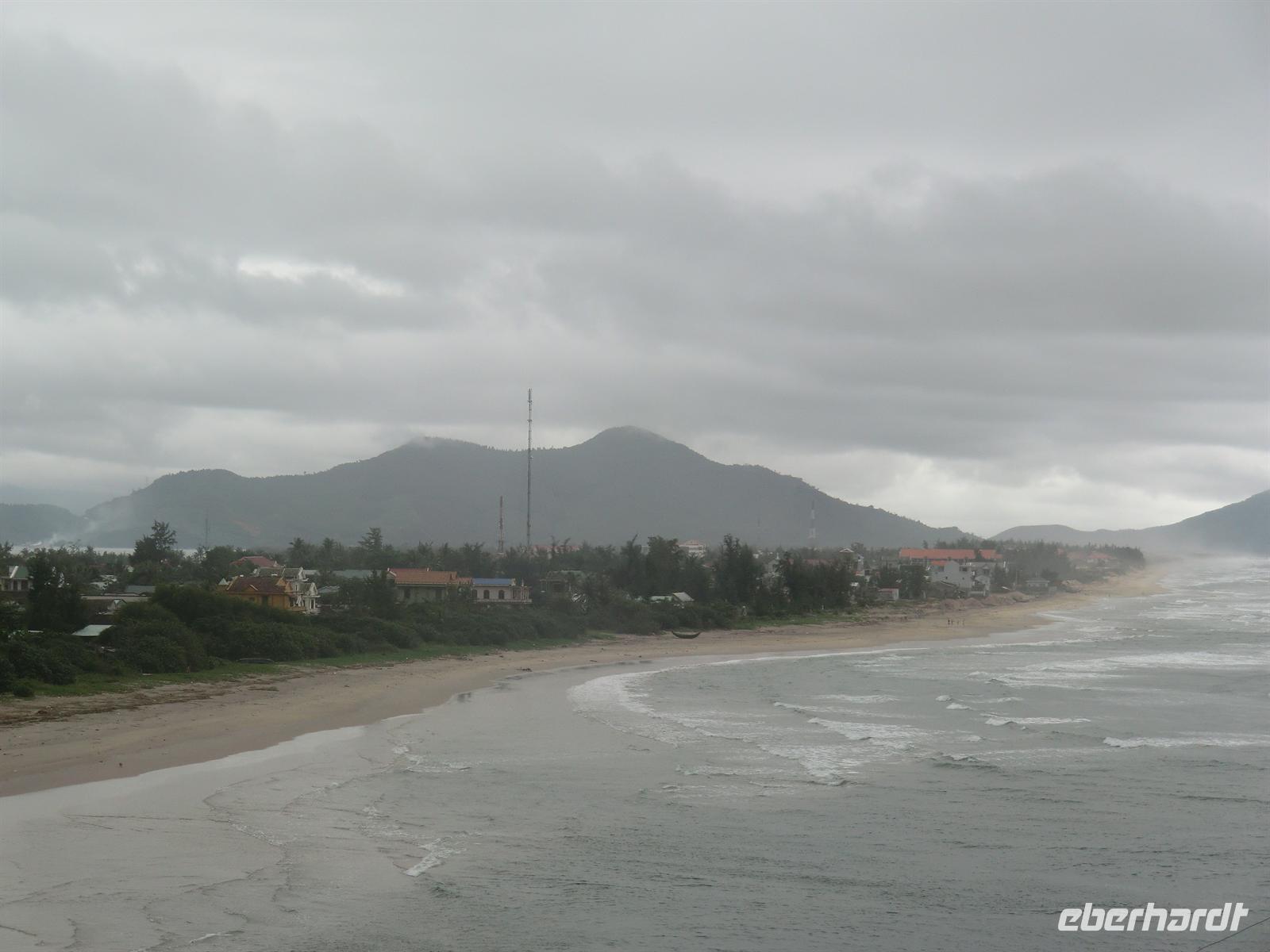 Anschließend verließen wir das Zentrum der viertgrößten Stadt Vietnams und fuhren weiter Richtung Norden. Vor der Überquerung des bekannten Wolkenpasses legten wir eine zweistündige Mittagspause an der Bucht von Lang Co ein. Zu fünft wagten wir uns in das angenehm warme Südchinesische Meer und genossen die Wellen. Als es dann auch von oben erneut nass wurde, trafen wir uns alle untern Baldachin des Restaurants und speisten köstlich frische Meeresfrüchte.