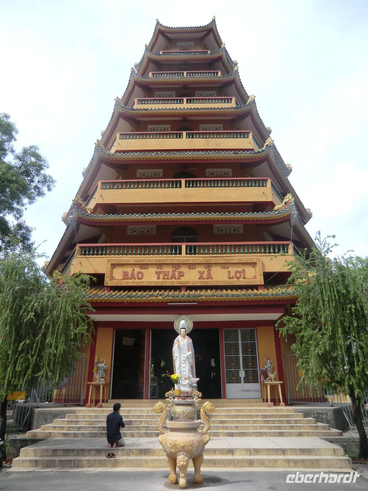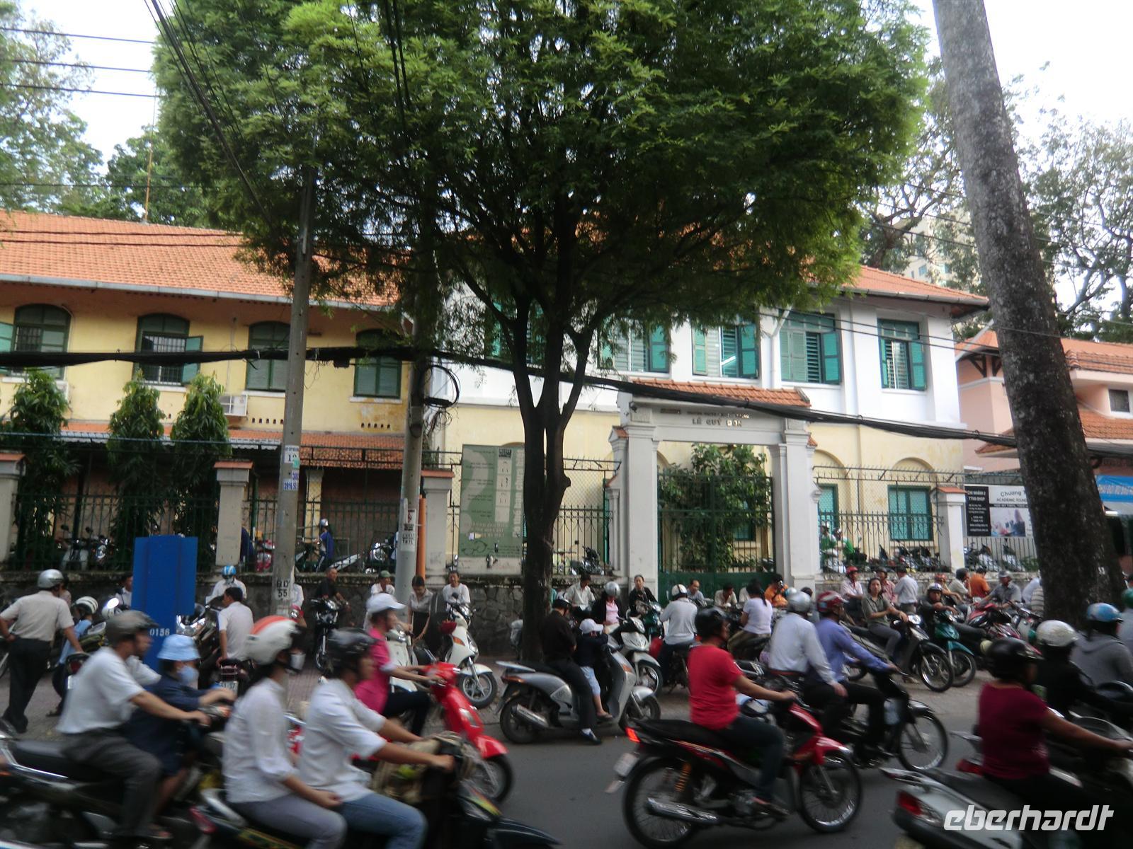 Nachdem der Regen gegen 3:00 Uhr nachts etwas Ruhe gab klingelte 5:00 Uhr der Wecker. Eine Stunde später saßen wir bereits im Bus, um per Flugzeug von Da Nang aus in den Süden zu starten. Pünktlich 9:10 Uhr erreichten wir die Weltmetropole Saigon, wo uns der quirlige Kiet in Empfang genommen hat. Ohne Regen und dafür bei umso wärmeren Temperaturen ging es geradewegs nach Chinatown, wo wir uns die chinesische Pagode Giac Lam ansahen. Besonders interessant war die riesige Urnenhalle. Anschließend hatten wir Zeit, über den chinesischen Großmarkt zu schlendern, der eine unglaubliche Anzahl von Schuhen, T-Shirts und Schmuck feil bot. 12:45 Uhr checkten wir dann im zentrumsnahen „Northern Hotel“ ein. Kurz darauf machten wir uns zu Fuß über die Haupteinkaufsstraße auf in das bekannte Nudelrestaurant „Pho 2000“ gegenüber dem