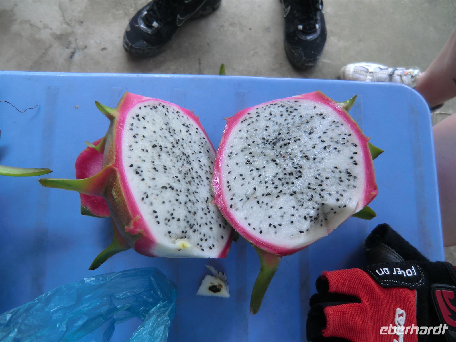 Nach einem einfachen aber leckeren Frühstück in der schwülen Hitze starteten wir pünktlich 8:00 Uhr zu unserer ganztägigen Radtour. Nach einer kurzen 20minütigen Fahrt per Bus, stiegen wir auf unsere Mountainbikes, um die bevorstehenden 55km anzugehen. Die ersten Kilometer führten die sonnige Straße entlang bevor wir in das gut befahrbare Wegenetz der umliegenden Dörfer einbogen. Überall grünte und blühte es und wir konnten vielerlei exotische Früchte und Pflanzen bewundern. Von rechts und links des Weges winkten stets die überaus freundlichen Bewohner und die Kinder riefen freudig „Hello!“ und winkten, als die bunte Kolonne an Langnasen an ihren Häuschen vorbeifuhr. Das nette Lächeln der Einheimischen und die asiatische Gelassenheit, die sie ausstrahlen ist einfach ergreifend! In einem kleinen Straßenrestaurant legten wir zur Mittagszeit ein herrliches Obstessen ein und schlemmten köstliche Mango, frische Lichees und Orangen nach Herzenslust.
