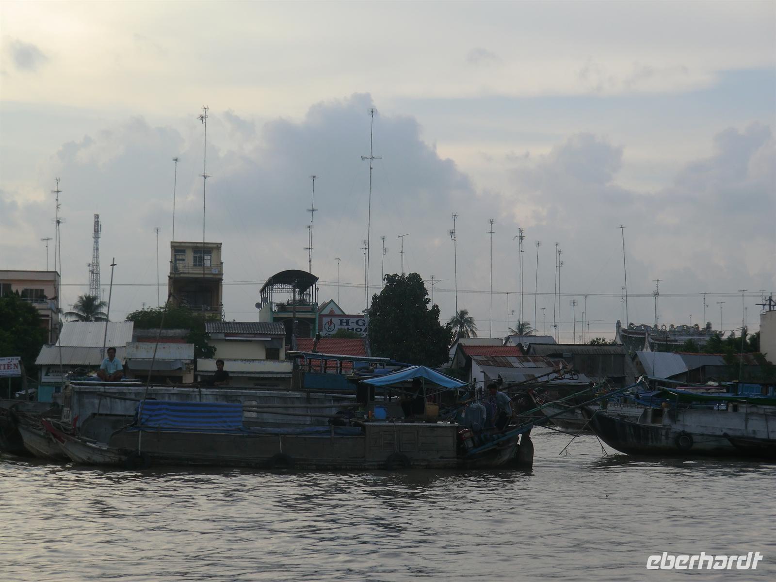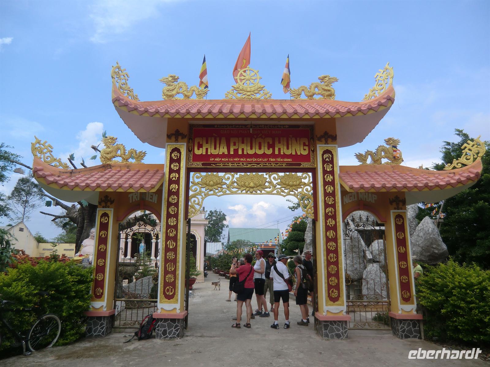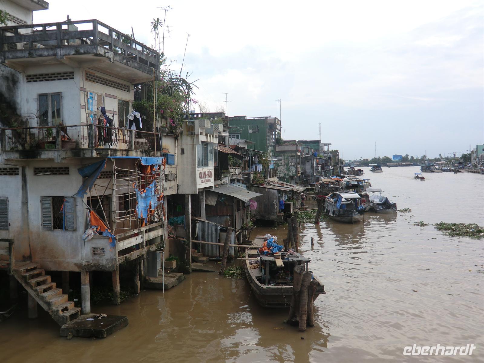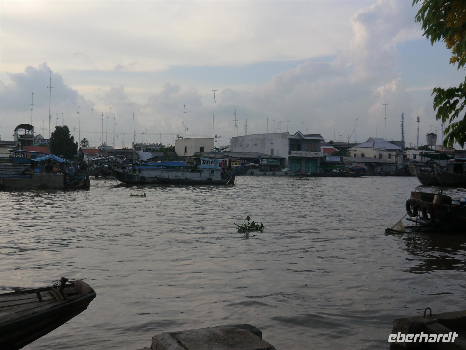 n schwimmenden Inseln arrangierte. Per Motorboot ging es zunächst los bis zu einem Obstcafé, wo und frische Mango, Papaya, Lichee und Ananas serviert wurde. Begleitet wurde das Ganze von köstlichem Jasmintee und einem Schälchen Chillisalz. Vietnamesen genießen frisches Obst oft zusammen mit diesem Salz, um den besonderen Geschmack zu unterstreichen. Mit einem kleinen Ruderboot durchkreuzten wir dann die von Bananenstauden und Papayasträuchern umgebenen kleinen Kanäle bis wir erneut die Motorboote erreichten, die auch unsere Räder an Bord transportierten. Mit dem Rad ging es auf eine 25km lange Tour hindurch das unglaubliche Grün kleiner Dörfer und den umgebenden Obstplantagen.