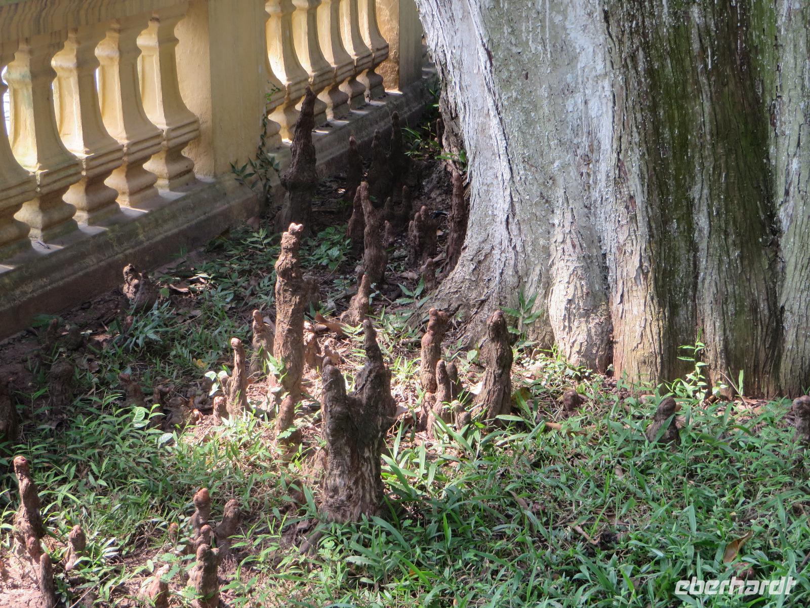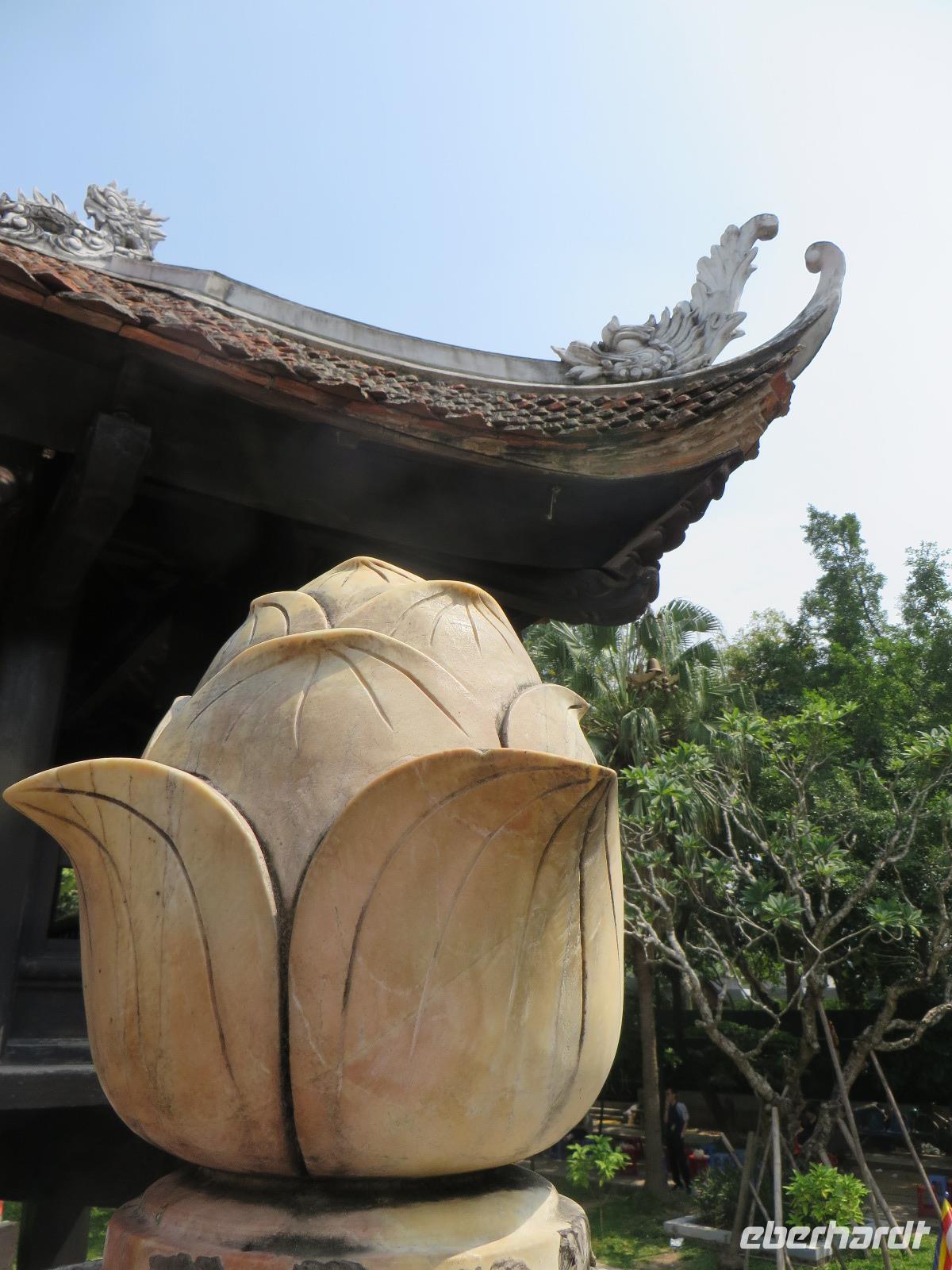Nachdem wir uns mit frischen Papayas und Ananas mit Chili-Salz gestärkt haben, gehen wir zu Fuß weiter zur nahe gelegenen Ein-Säulen-Pagode. Hier nehmen wir uns ausgiebig Zeit, diese anzuschauen, und halten uns an den Tipp von Frau Nguyen von Eberhardt-Travel, dass man hier tolle Postkarten und Briefmarken erhalten kann. Die ersten von uns erhaschen eine Nase voll Durian-Duft, der Stinkefrucht, die ihren Namen nicht ohne Grund trägt... Es ist sicherlich nicht das letzte Mal, dass wir ihr begegnen.