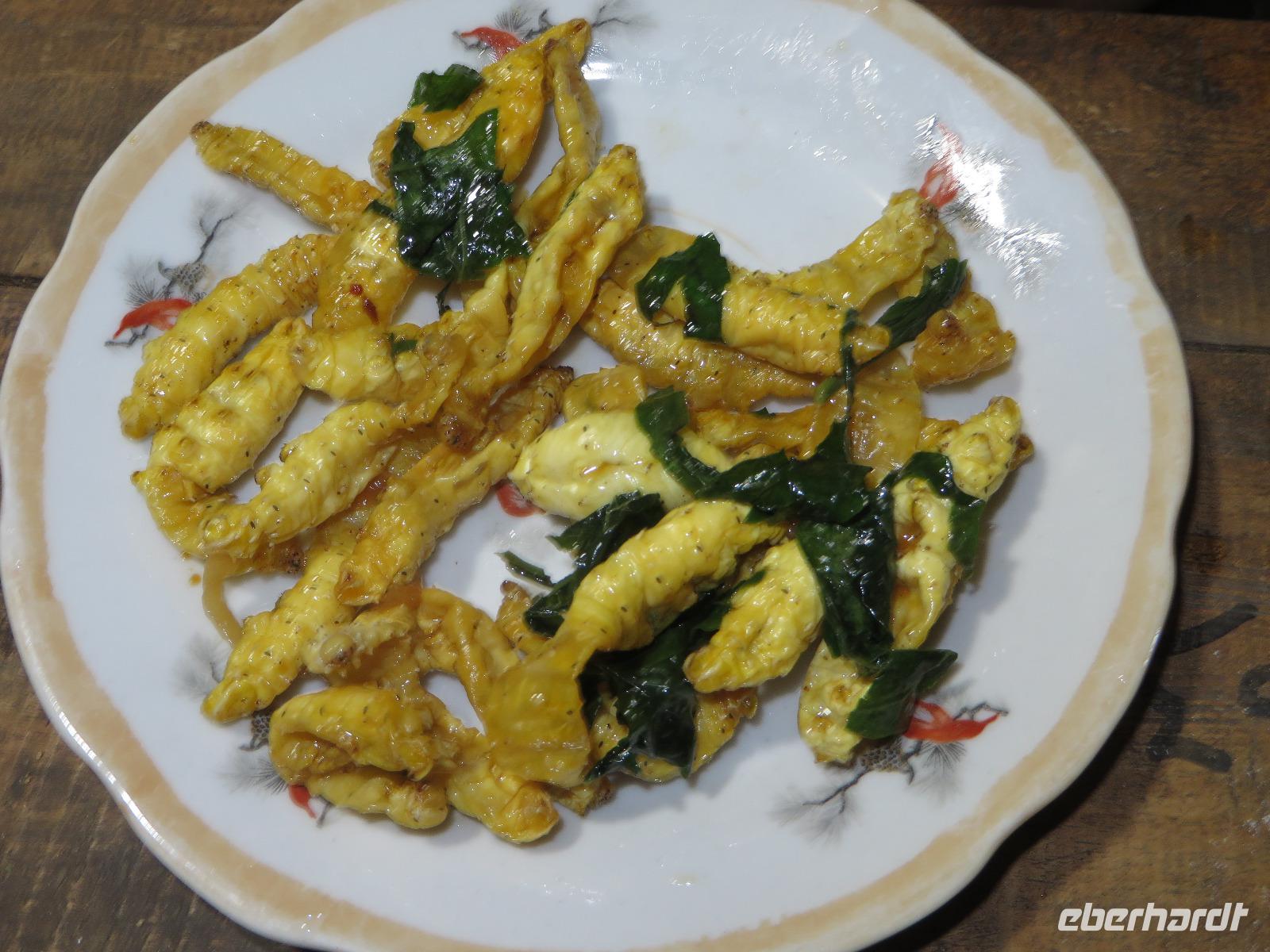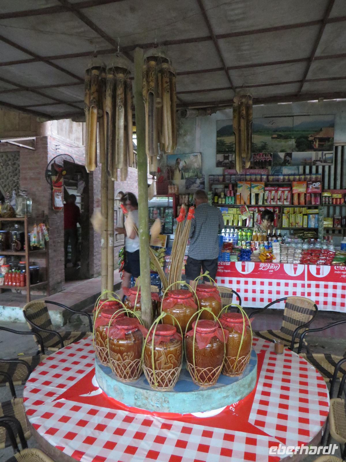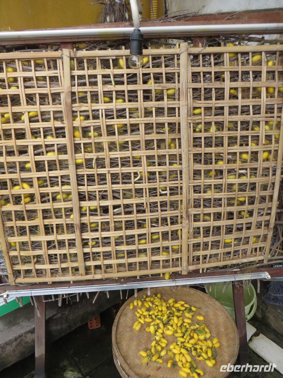 Unser Mittagessen bekommen wir bei einer wunderbaren Familie, bei der wir uns einige Zeit erholen und die heißeste Zeit des Tages verstreichen lassen. Uns wird die Seidenraupenzucht der Familie gezeigt, und wir ahnen noch nicht, wie wir die Raupen später am Tag wiedersehen werden...