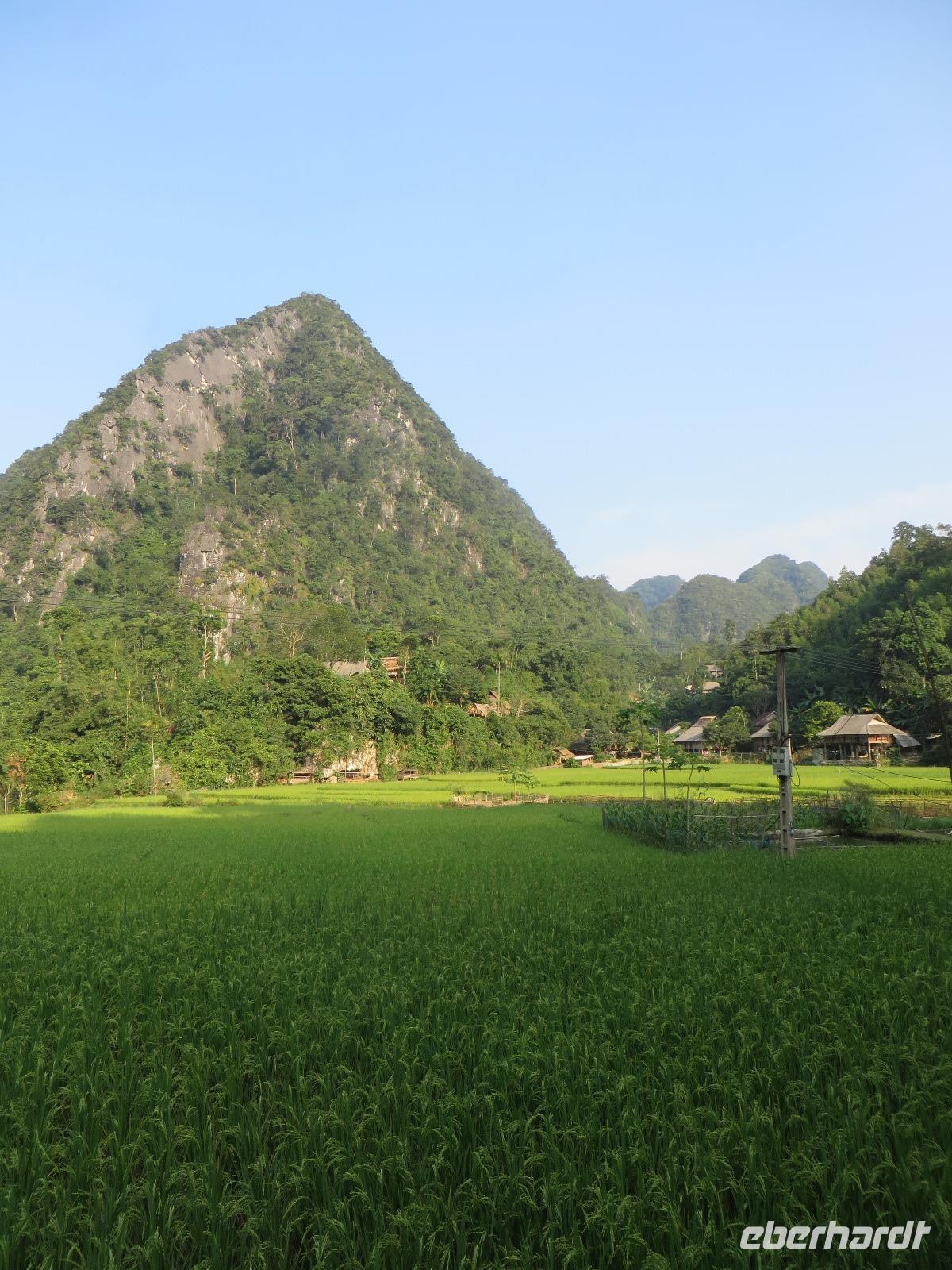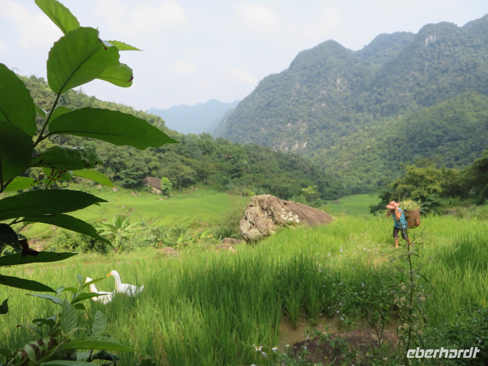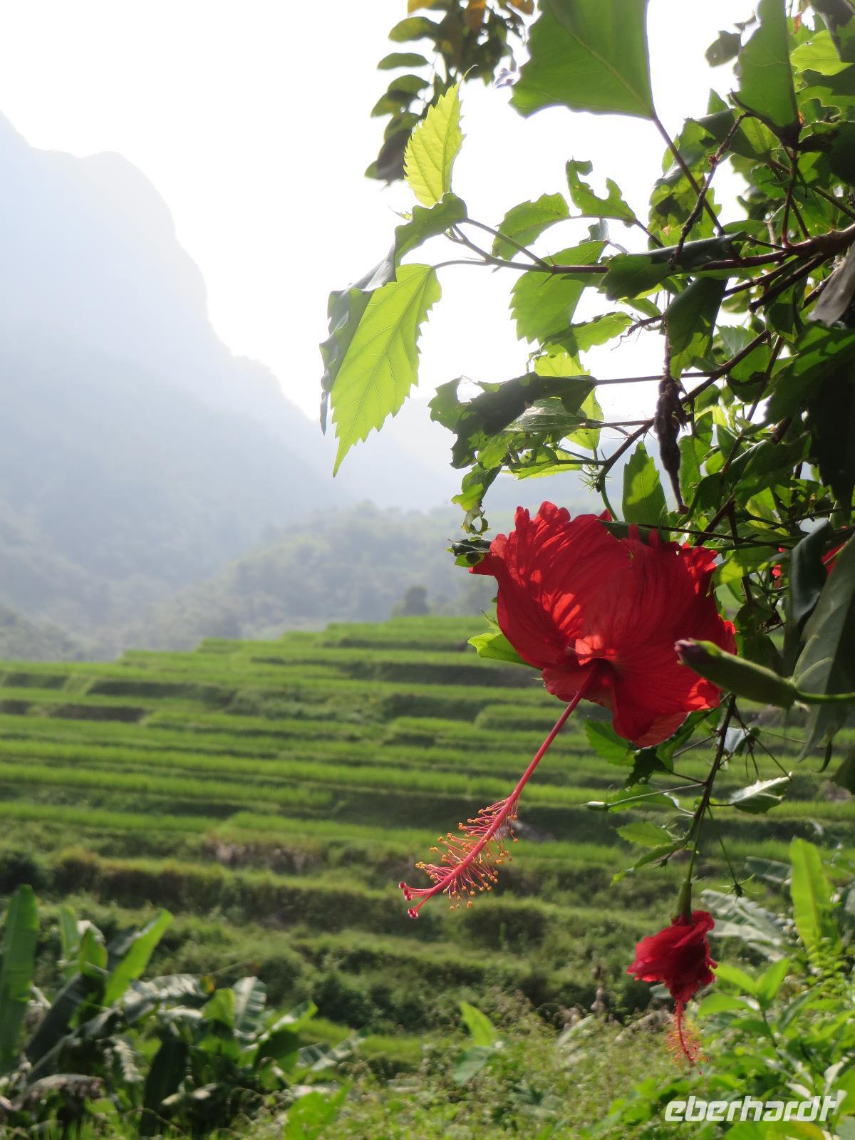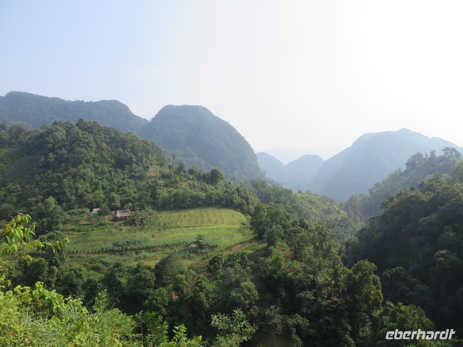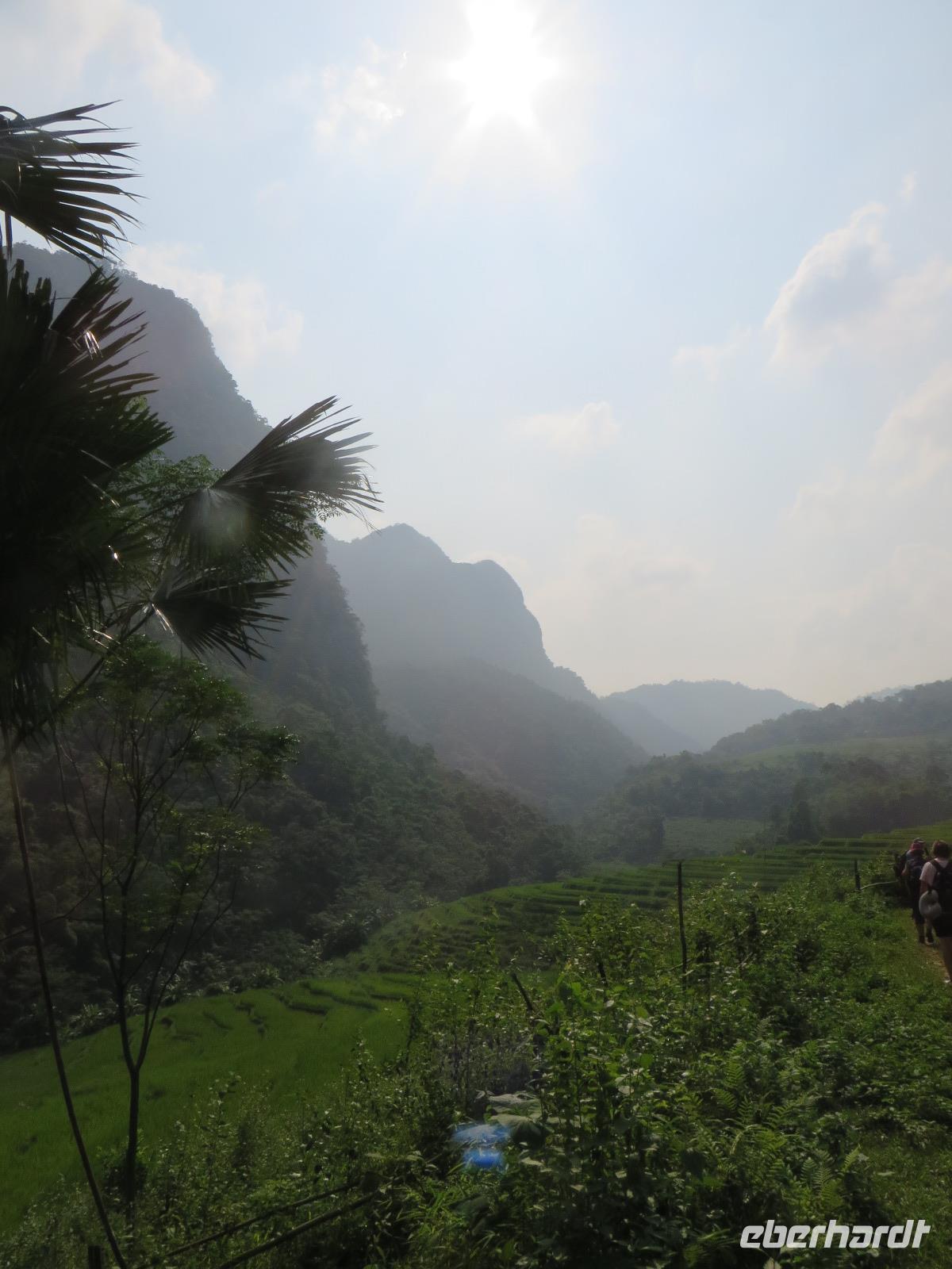 Die Rucksäcke sind gepackt und so geht es früh los zu unserer größten Wanderung auf dieser Reise, von den Thai zu den Muong. Die Wanderung führt uns durch die verschiedensten Landschaften, und jeder Aufstieg wird mit einem noch schöneren Ausblick in das, wie wir es getauft haben, "Postkarten-Vietnam" belohnt. Unterwegs treffen wir auf viele Einheimische, und für einige Kinder sind wir offensichtlich eine der ersten "Langnasen-Gruppe", die sie treffen. Sie freuen sich über unsere kleinen Geschenke, und wir genießen die Zeit in der Natur und entdecken das Land.