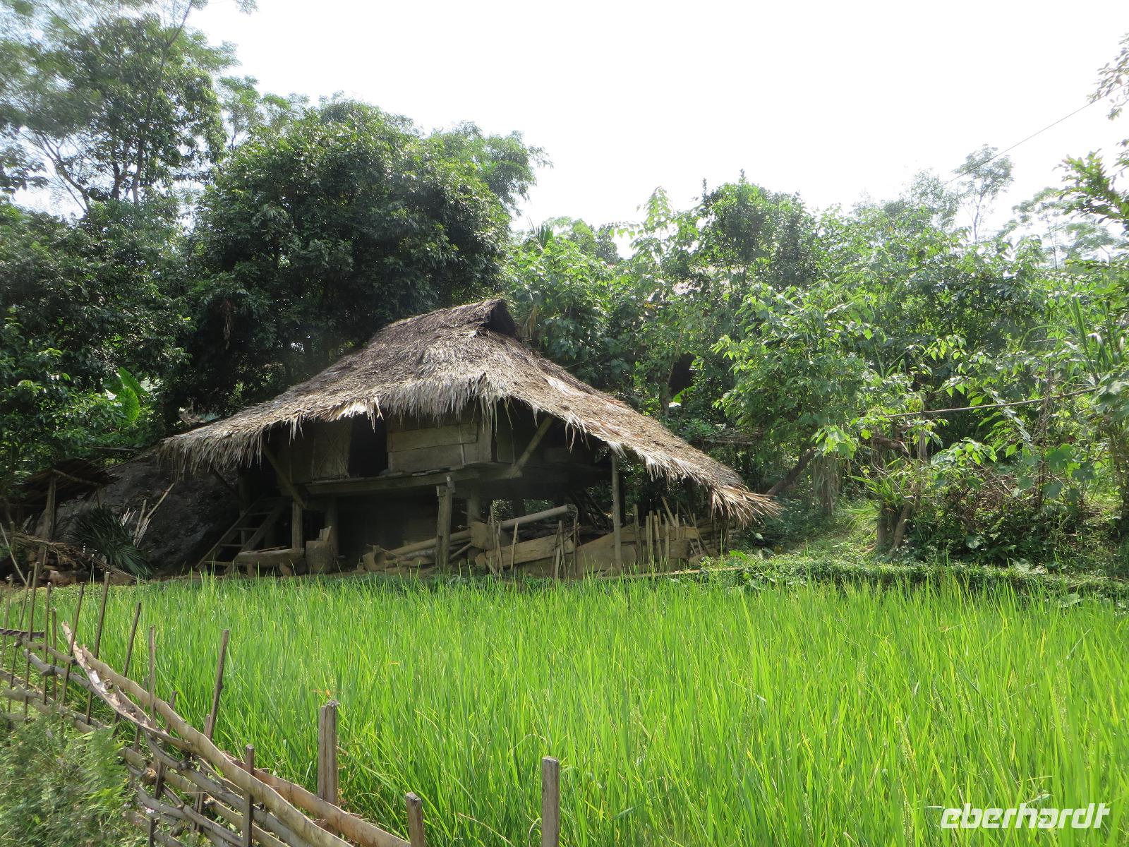 Anschließend fahren wir mit unserem Wanderreiseleiter und Han weiter zur eigentlichen Wanderung. Diese führt uns durch einen Bach und entlang einiger kleiner Dörfer, in denen wir fröhlich von den Kindern begrüßt werden. Nach etwa anderthalb Stunden kommen wir bei unserer Gastfamilie an. Wir sind restlos begeistert, es ist wunderschön eingerichtet und wir werden sehr herzlich aufgenommen!!!
