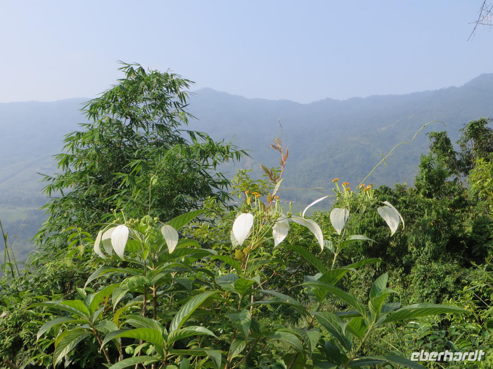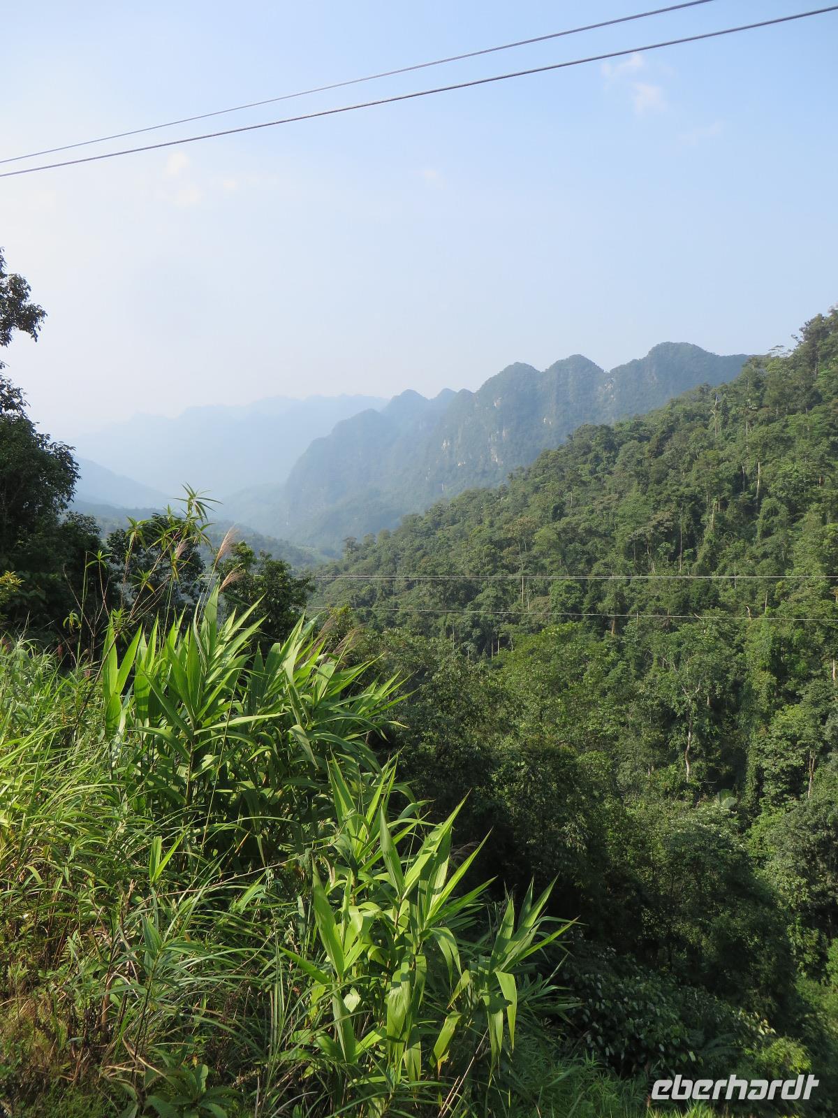 Im Bach-Ma Nationalpark angekommen sind wir mit einem Kleinbus weiter hoch in die Berge gefahren, und es regnete immer stärker. Als wir ausstiegen kam ein großer Platzregen runter und alles war total aufgeweicht. So haben wir dann beschlossen, nur eine kurze Tour bis zum Aussichtspunkt zu laufen. Unser Wanderführer war jedoch sehr gut und konnte viele Tierstimmen nachmachen. Die Vögel antworteten ihm auch, jedoch blieben die meisten von ihnen in ihren trockenen Verstecken. Dafür sahen wir riesige Regenwürmer mit einer Länge von zum Teil einem Meter! Dick waren sie wie ein Zeigefinger, unglaublich!