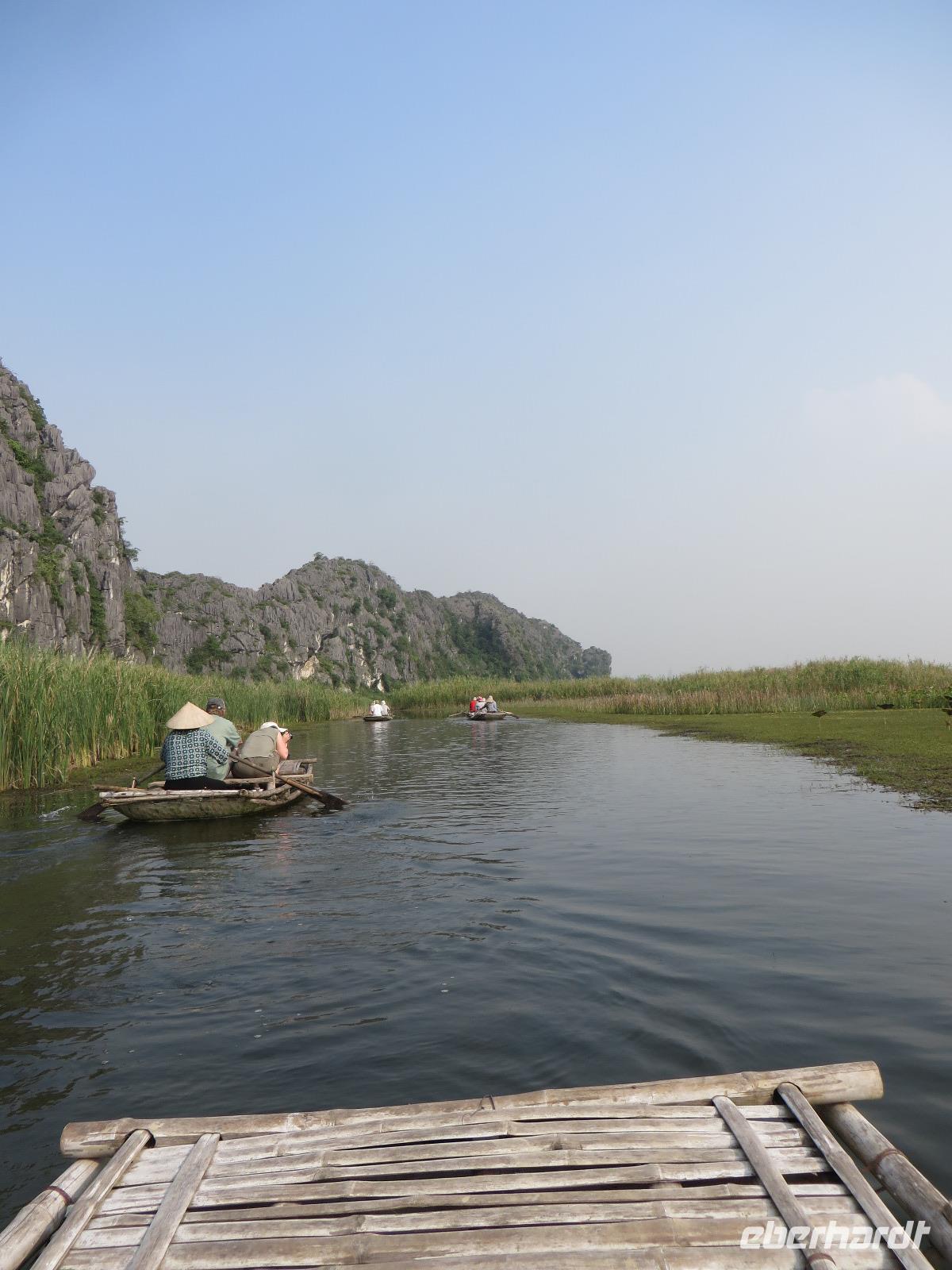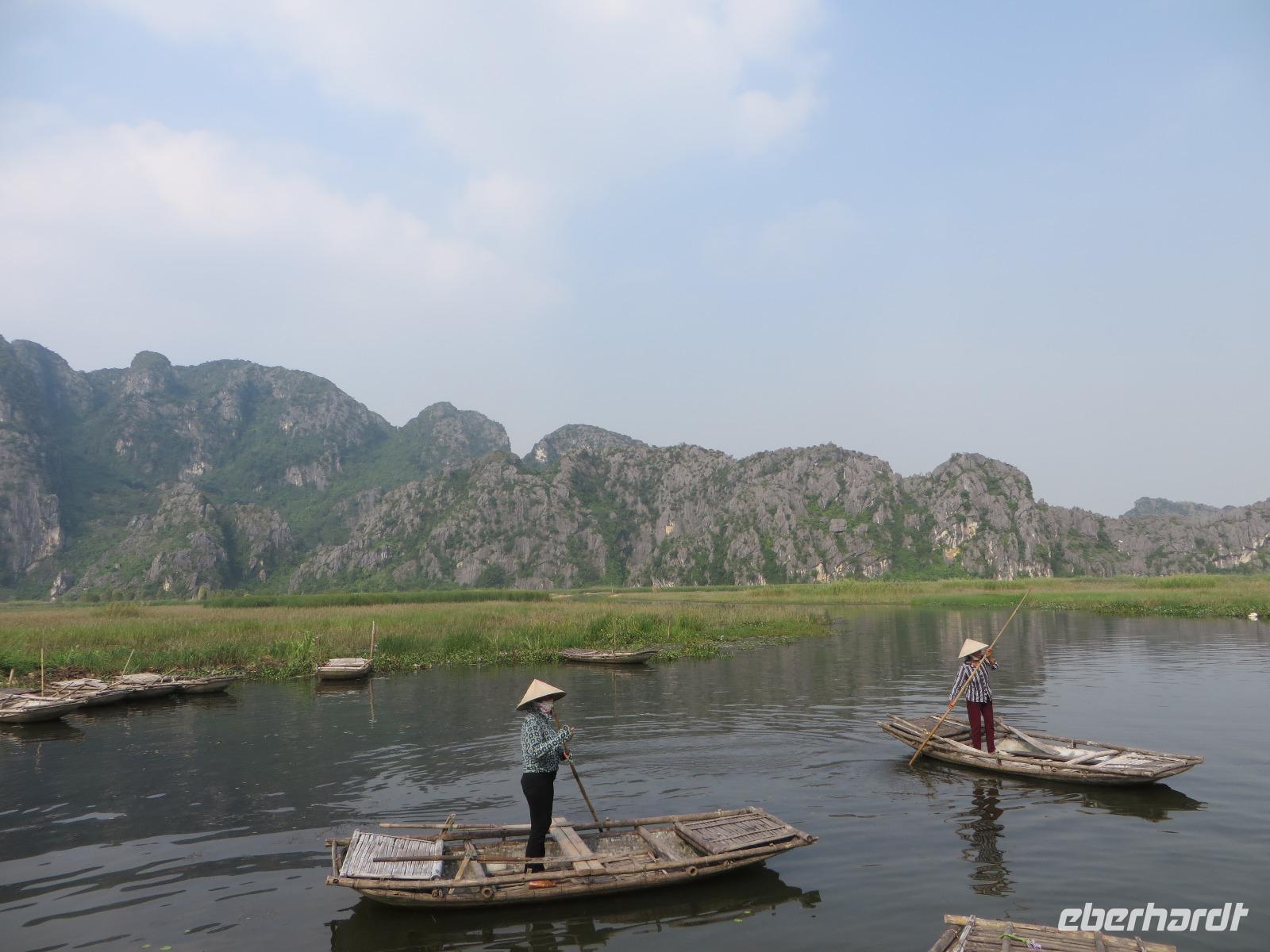Nach einer kurzen Mittagspause kommen wir an der Trockenen Halong Bucht an. Hier werden wir mit den traditionellen Sampan-Booten durchgefahren. Sogar eine Höhle durchqueren wir!