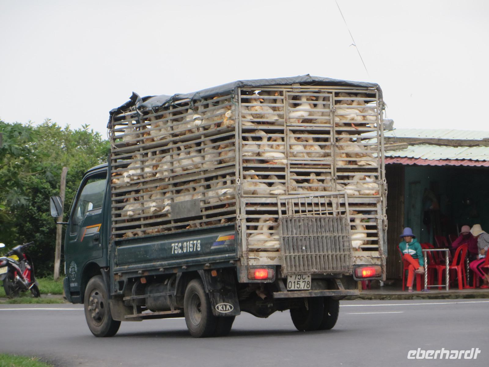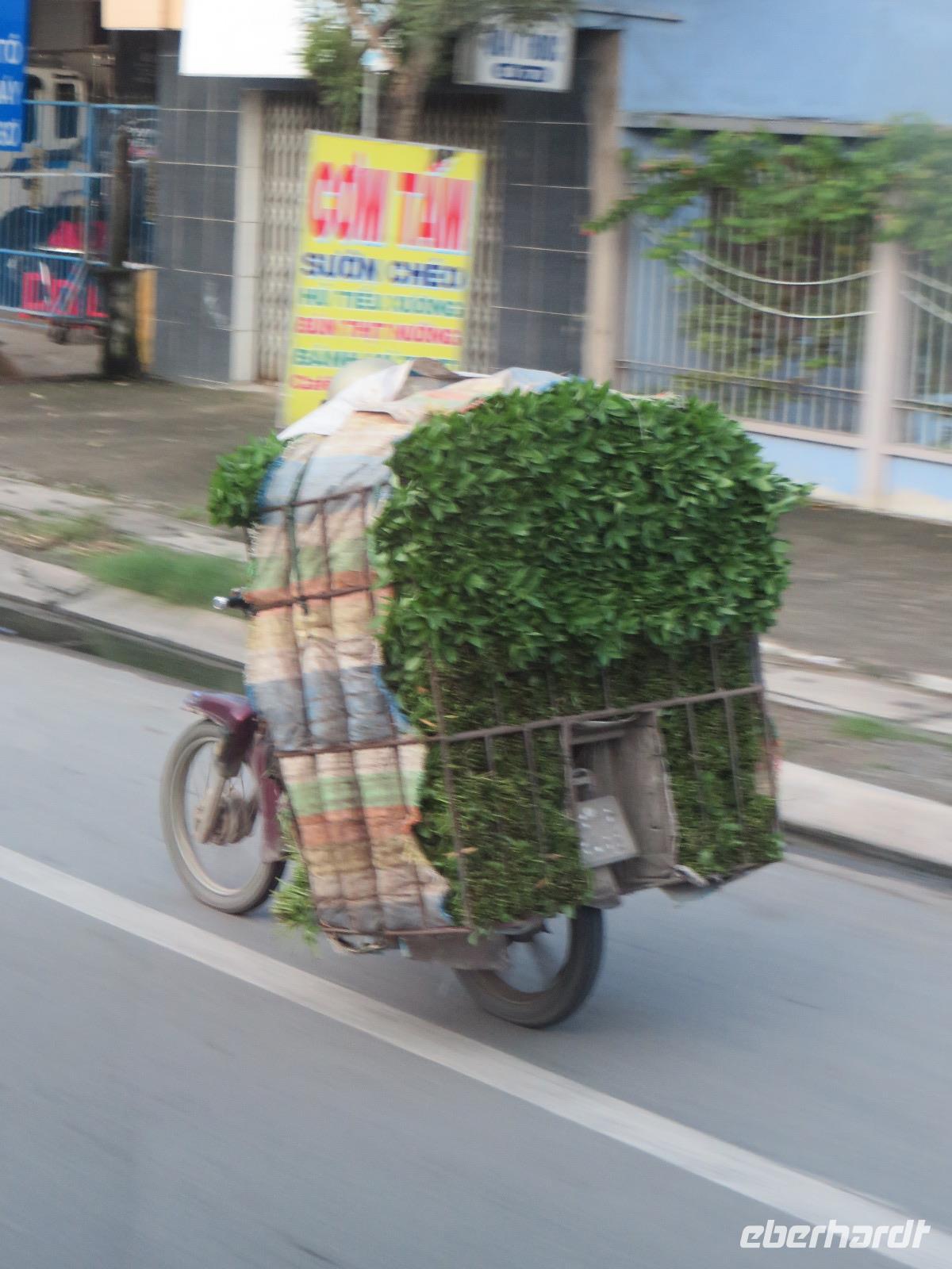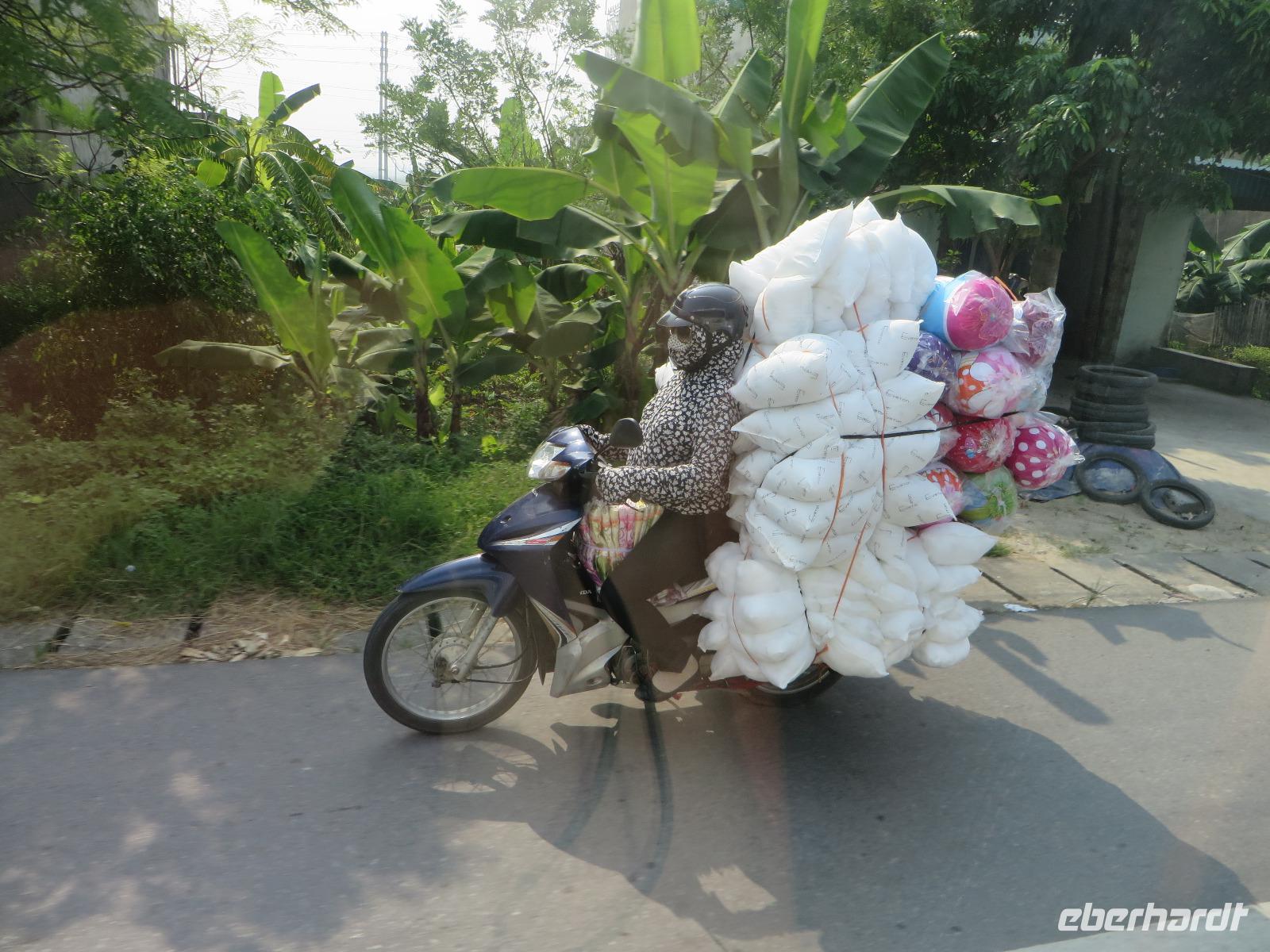 Die Fahrt aus Hanoi raus führt uns zum Teil nochmal an den Zielen der letzten Tage vorbei. Wir merken, dass wir doch deutlich entspannter auf den Verkehr reagieren, aber ab und an zücken wir immer noch den Fotoapparat, um besonders auffällige Fahrzeuge festzuhalten.
