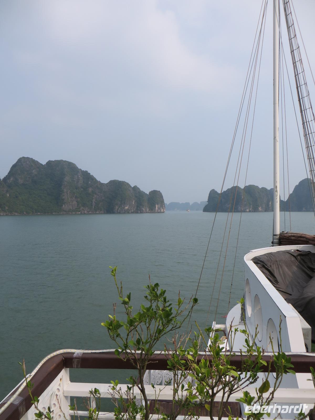 Wir genießen unser kleines Frühstück, bevor wir bei bestem Wetter zu einer Höhlenbesichtigung aufbrechen. Die Höhlen sind erst seit circa 2 Monaten zugänglich, und wir freuen uns, sie sehen zu dürfen. Anschließend können wir alle unsere Füße in das Südchinesische - pardon, Vietnamesische - Meer tauchen, bevor es zu unserem leckeren Brunch zurück auf das Schiff geht. Das Essen hier in Vietnam und auch insbesondere auf dem Schiff ist unglaublich gut!