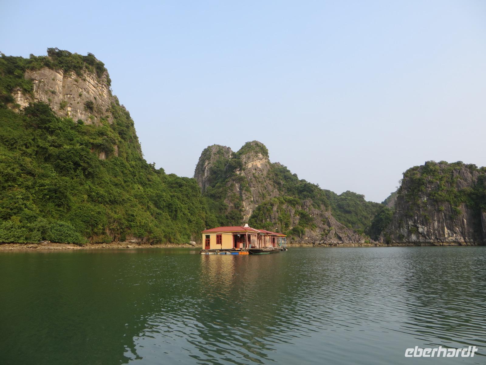 Am Nachmittag machen wir eine Exkursion zu den Schwimmenden Dörfern der Halong Bucht. Fischer, die seit Generationen hier leben, bleiben auf diesen kleinen, auf dem Wasser durch Pontons schwimmenden Häusern. Wir sind sehr beeindruckt von der Landschaft und dieser Lebensweise, doch Vu wird nicht müde, uns alle Fragen zu beantworten. Im Anschluss besuchen wir noch eine kleine Perlenzuchtstation, bevor es zurück zu unserem Schiff geht.