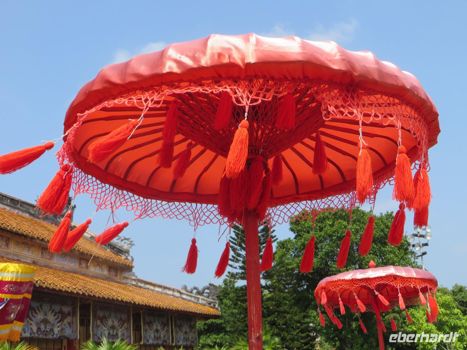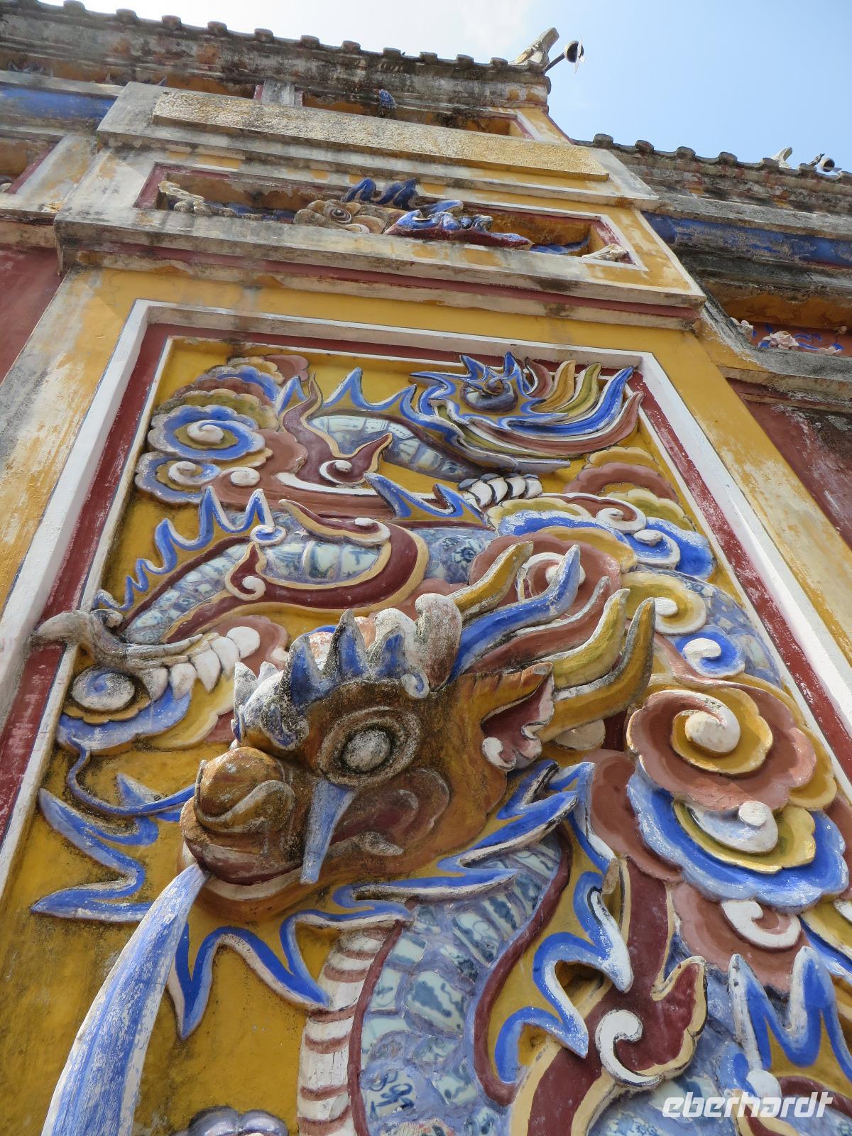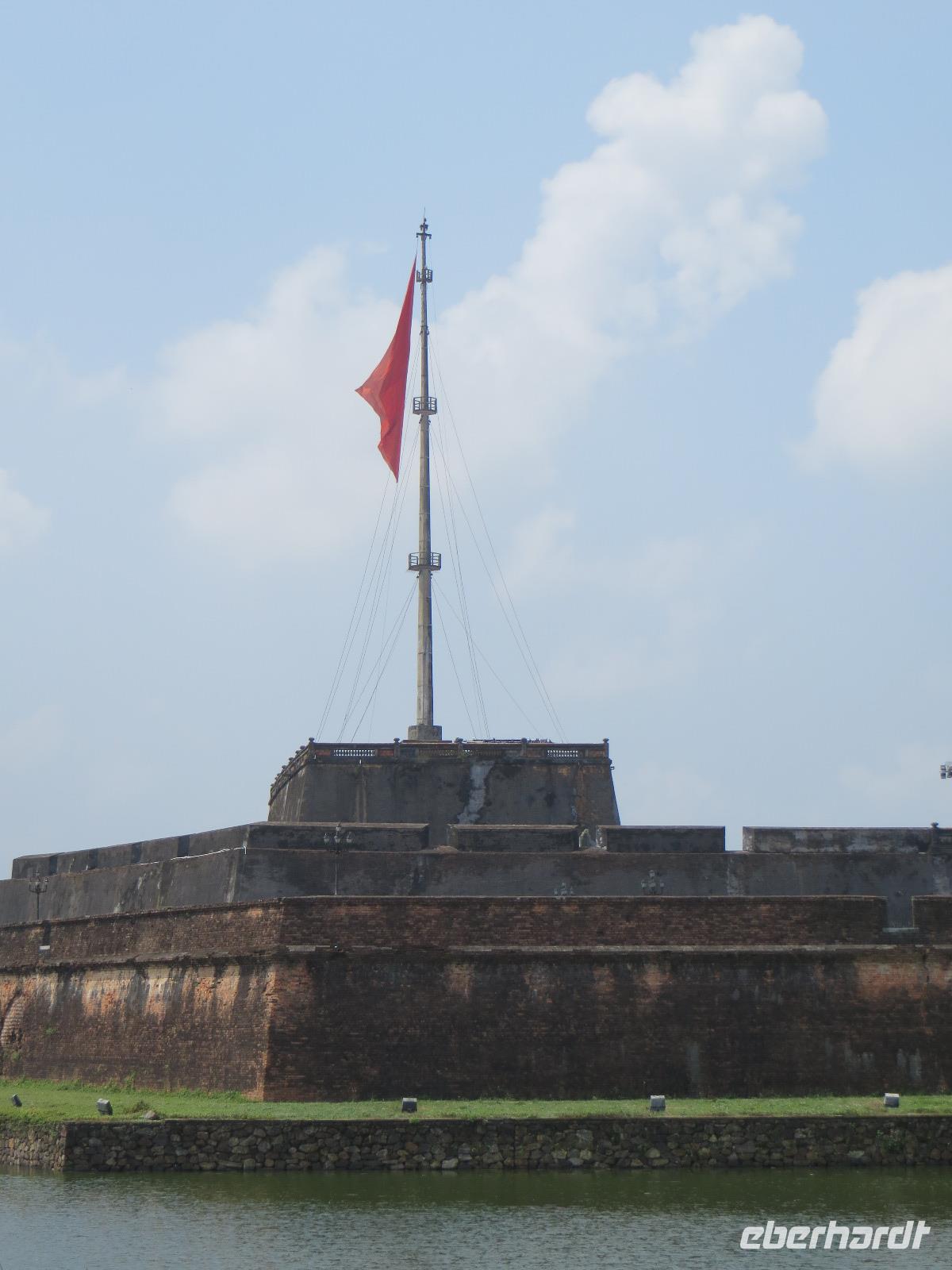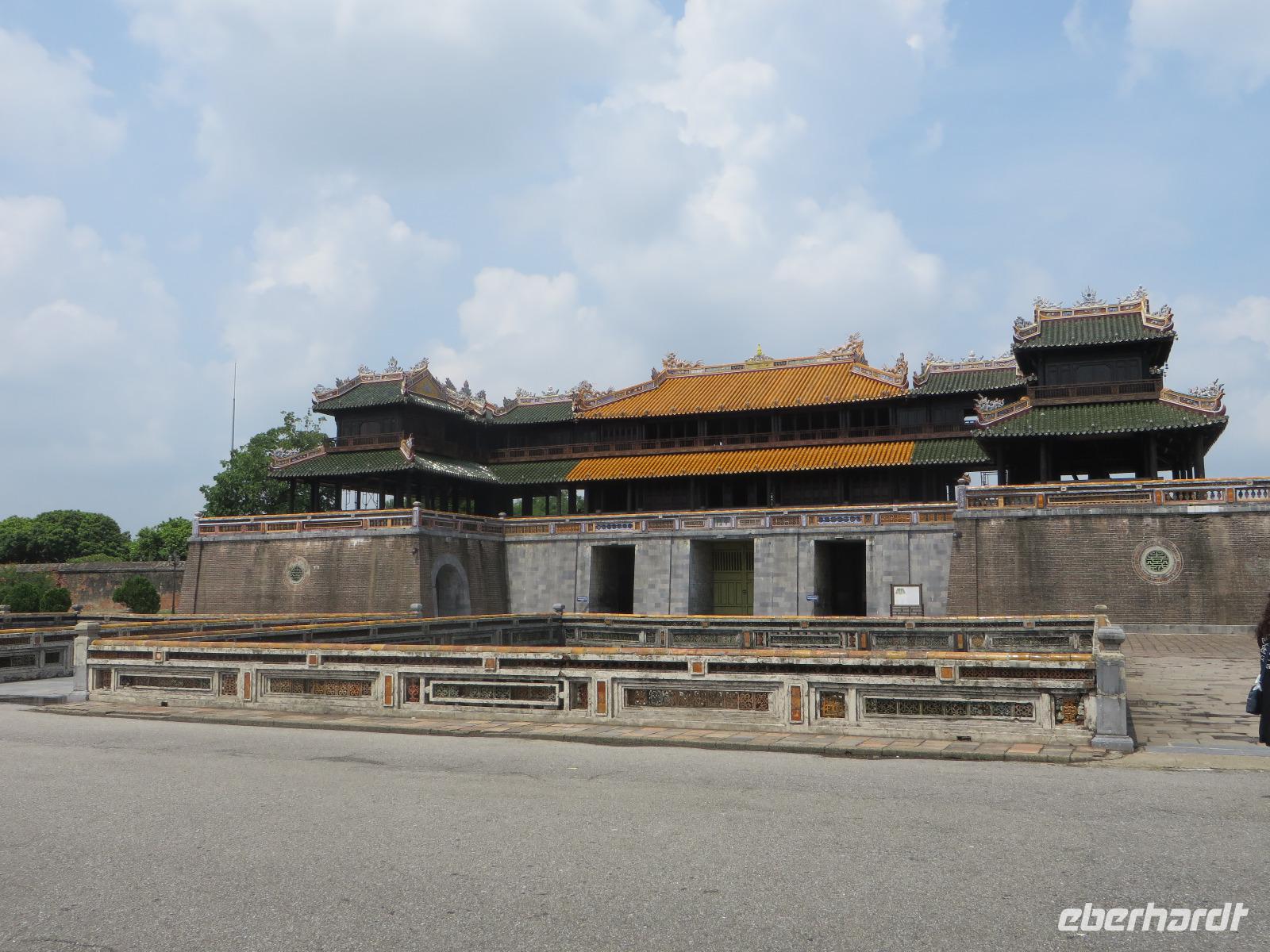 Anschließend ging es mit dem Bus weiter zur Zitadelle und dem alten Königspalast. Die Zitadelle wurde der Verbotenen Stadt Pekings nachempfunden und leider zu großen Teilen im Vietnamkrieg zerstört. Sie gehört seit 1993 zum UNESCO-Welterbe und wird mit Fördergeldern der UNESCO sehr schön wieder hergerichtet. Hier verbringen wir viel Zeit und lernen über die Herrschaft der Nguyen-Dynastie, die von 1802 bis 1945 die vietnamesischen Könige stellte. Chien erklärt uns alles sehr genau und auf eine witzige Art und Weise, so dass wir aus dem Lachen nicht mehr herauskommen.