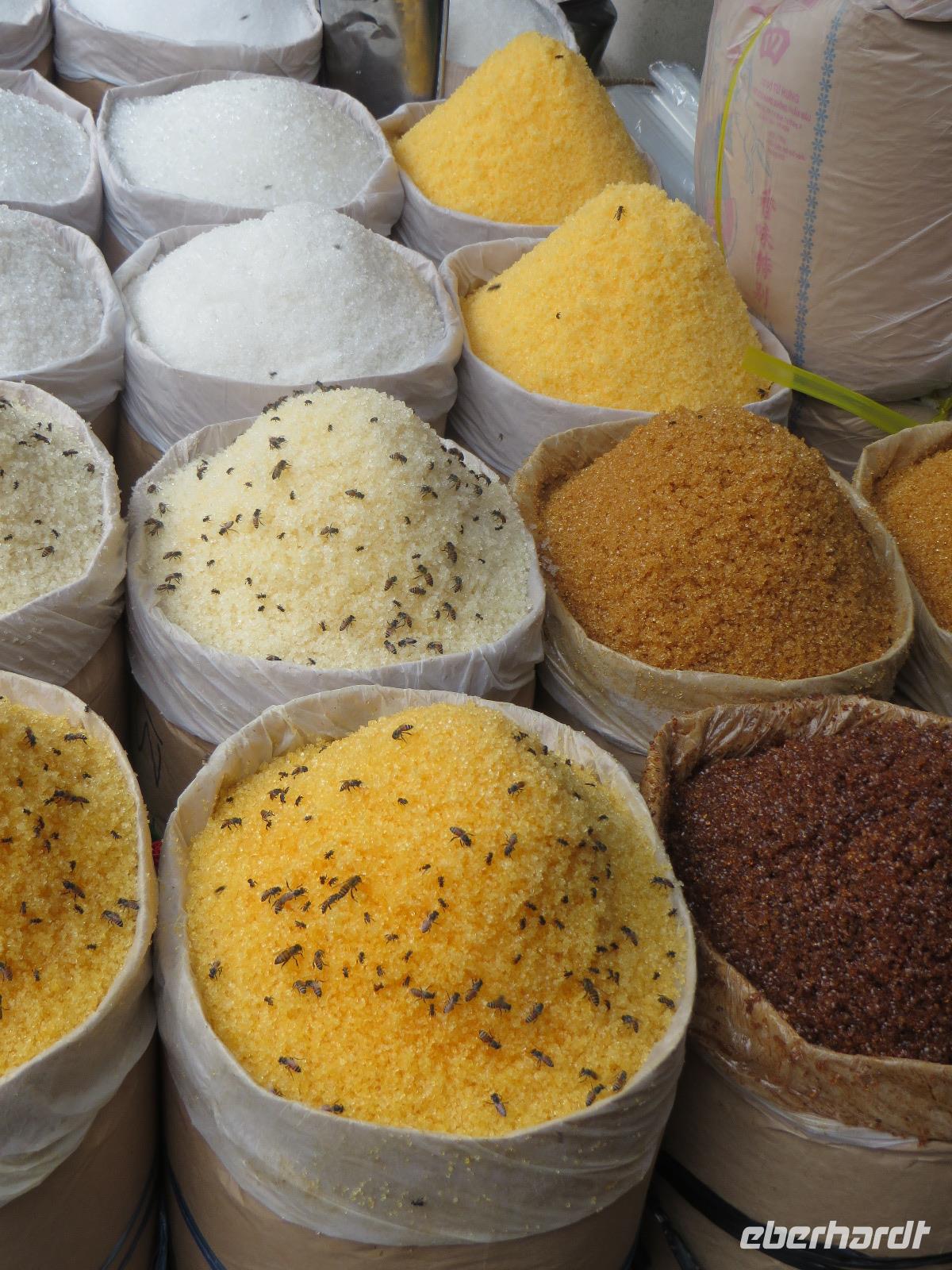 Wir schauen uns auch eine Ausstellung für Seidenraupen an und sehen hier die verschiedenen Stadien. Außerdem besuchen wir auch ein Geschäft, in dem Räucherstäbchen aus Sandelholz hergestellt werden. Den Abschluss unseres Programms heute bildet der Markt, wo wir uns an verschiedenen Obstsorten satt essen. Einige von uns sind mutig und probieren Durian, die Stinkefrucht. Wenn man über den Geruch hinweg sieht, dann schmeckt sie sehr lecker! Aber wir verstehen auch alle, warum man sie nicht mit ins Hotel nehmen darf, der Geruch ist doch sehr durchdringend.